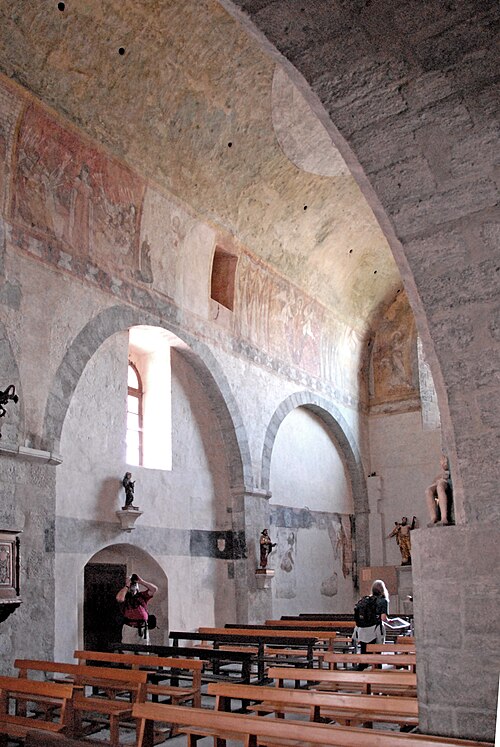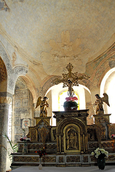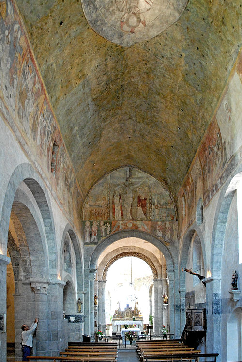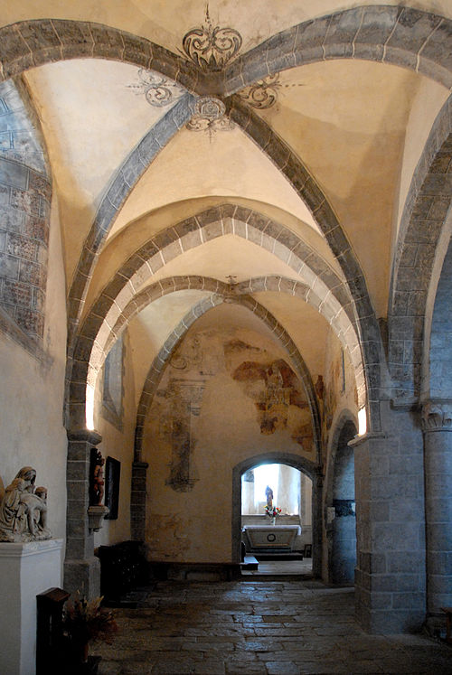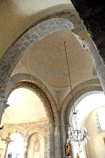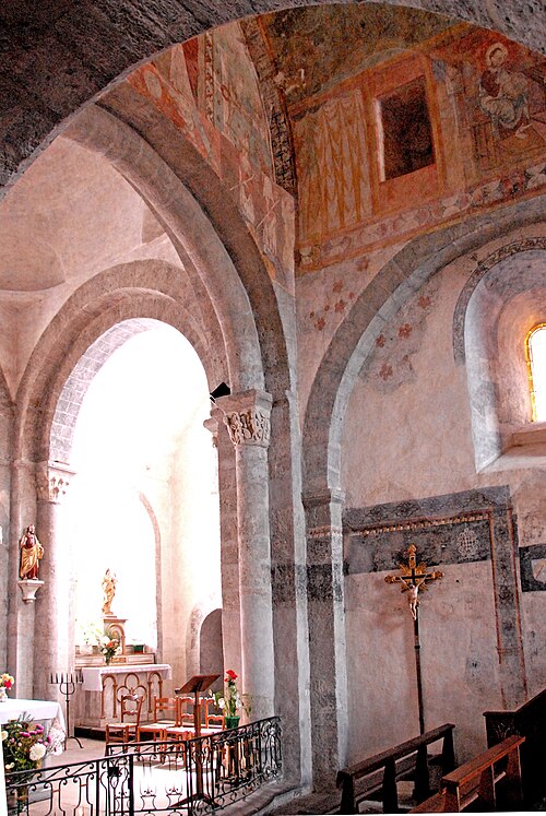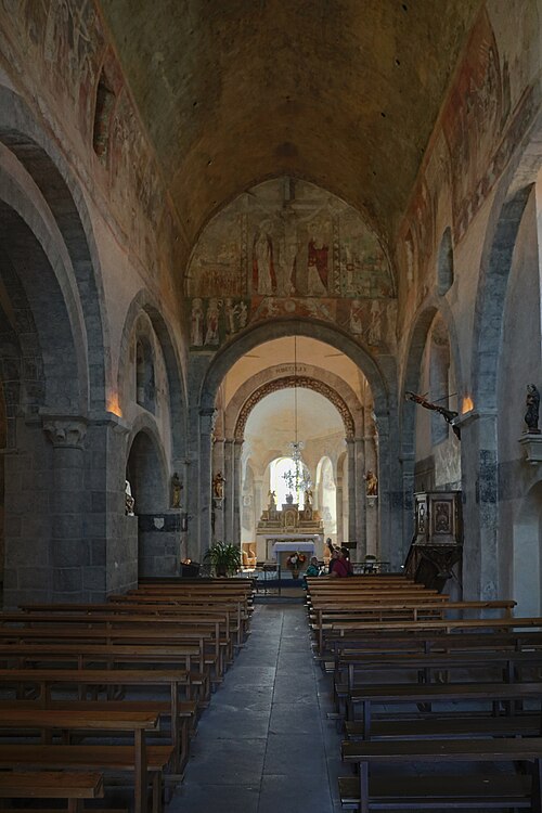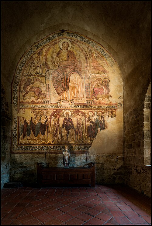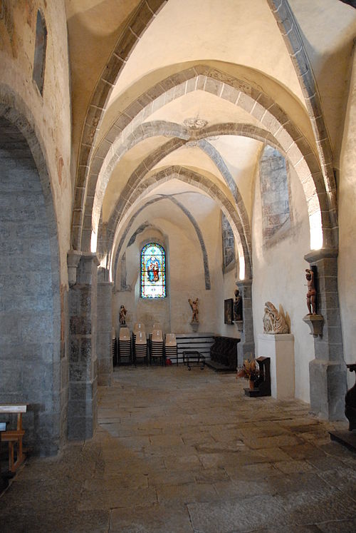L'abbaye Saint-André-de-Lavaudieu est un ancien prieuré de moniales bénédictines situé à Lavaudieu, en Haute-Loire, qui dépendait de l'abbaye de La Chaise-Dieu et de l'ancien diocèse de Saint-Flour. Fondé au XIe siècle, le prieuré connaît son apogée au XIIe siècle, période durant laquelle sont édifiés l'église prieurale, le cloître et une grande partie des bâtiments conventuels. L'église abbatiale romane et le cloître subsistent, et le réfectoire, décoré de peintures, est également préservé. Le cloître, de petites dimensions mais complet, alterne colonnes simples et jumelées surmontées de chapiteaux historiés ; sa partie la plus ancienne se trouve sur le côté ouest. Des chapelles latérales ont été ajoutées au nord de la nef au XIIIe siècle. Un important cycle de peintures orne l'arc triomphal et la nef ; on y lit des scènes de la Crucifixion, des épisodes de la Passion, des évangélistes et des représentations mariales, nombre de ces peintures ayant été recouvertes entre le XVIe et le XIXe siècle et redécouvertes en 1966-1967. Le réfectoire porte une fresque de la fin du XIIe siècle, de style byzantinisant avec une influence syrienne, et des fragments d'une peinture du XIIe siècle représentant le Christ en majesté et la Vierge ont été retrouvés en 1896. Parmi les sujets figurés figurent l'Annonciation, la Dormition de la Vierge, saint André, saint Christophe, un évangéliste, l'assomption de sainte Madeleine, une allégorie de la Mort d'influence italienne, ainsi que la légende de sainte Ursule et des onze mille vierges, cette dernière repeinte au XVIe siècle à l'emplacement d'une scène de 1315 abîmée par l'humidité. Le mur nord, qui porte un cartouche daté de 1315, présente un aspect gothique. À partir du XVIe siècle, l'abbaye passe en commende et adopte la règle des chanoinesses, le recrutement se faisant alors parmi la noblesse auvergnate ; les religieuses quittent le dortoir au-dessus du cloître pour vivre dans des maisons individuelles à l'arrière du monastère tout en conservant des offices communautaires. Les supérieures portent le titre d'abbesse à partir de 1718 et des appartements pour l'abbesse sont aménagés au XVIIIe siècle au-dessus de la galerie ouest du cloître. Le cardinal de Rohan y trouva refuge au XVIIIe siècle après l'affaire du collier. Lors de la Révolution, les chanoinesses quittent le monastère en 1791 ; l'abbaye est vendue comme bien national en 1792, morcelée et partiellement transformée en bâtiments agricoles, le côté ouest du cloître étant modifié pour la stabulation et le passage des charrettes, et le clocher tronqué en 1793. Des campagnes de restauration ont ensuite cherché à mettre en valeur les vestiges conventuels intégrés au village, et le site a servi de décor pour le film Les Rivières pourpres 2. Propriété de l'État pendant une période, la propriété a été transférée à la commune par convention le 28 juin 2007 ; les bâtiments, protégés au titre des monuments historiques, appartiennent à la commune et se visitent. Plusieurs éléments bénéficient d'une protection officielle : l'église abbatiale et le cloître ont été classés en 1862, le réfectoire orné de fresques classé en 1932, des parties des bâtiments abbatiaux protégées en 1958, l'ancien logis de l'abbesse classé en 1966 et les jardins inscrits en 2001. Les dimensions intérieures sont encore mesurables : l'église a une longueur de 26,70 m, la nef une largeur comprise entre 5,30 et 5,60 m, le transept une largeur de 12,15 m et une hauteur de nef d'environ 14 m ; le cloître et le réfectoire mesurent chacun environ 15,6 × 5,5 m. La succession des prieures et des abbesses est bien documentée, de même que l'ensemble des biens et prieurés rattachés au prieuré au fil de son histoire.