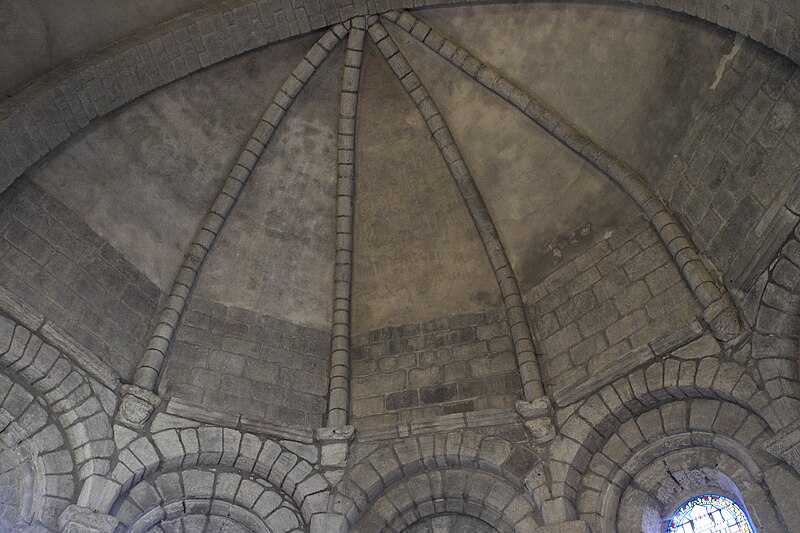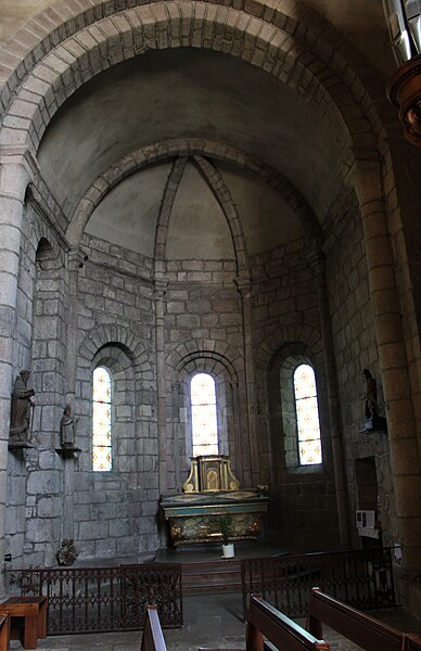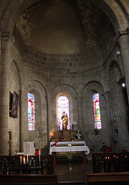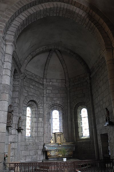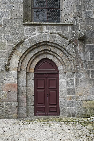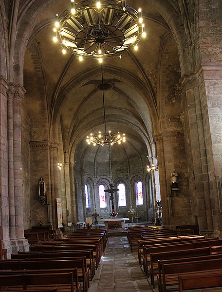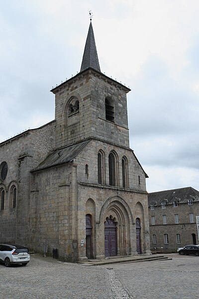 L'église présente un clocher-porche roman-limousin polylobé, orné de onze chapiteaux sculptés qui constituent la partie la plus ancienne du bâtiment et dont la construction a sans doute commencé en 1085. Les chapiteaux du narthex datent du XIe siècle ; la nef fut élevée à la fin du XIIe siècle et la voûte, posée sur croisées d'ogives, est du XIIIe siècle, au début du style gothique. Certains auteurs rapportent la présence de pierres gravées indiquant la date de 1119 pour le transept et les absides, affirmation contestée par Jean-Baptiste Poulbrière en 1880 qui jugeait improbable une inscription en chiffres arabes sur pierre pour le XIIe siècle. L'orientation des absides, inclinées vers le sud par rapport à l'axe de la nef, pourrait correspondre au lever du soleil le jour de la fête du saint patron. Les dimensions intérieures de l'église sont de 49 mètres de longueur, 26 mètres de largeur au transept et 14 mètres de hauteur sous la voûte.