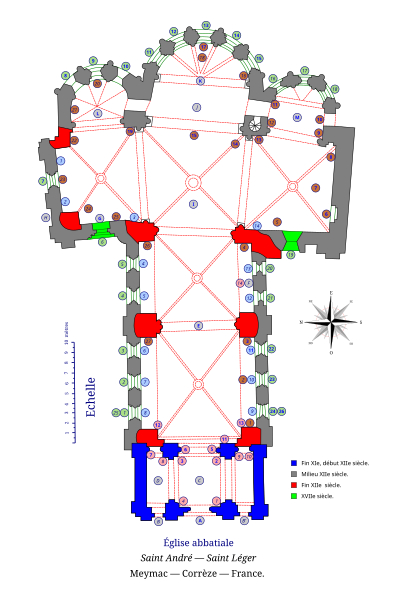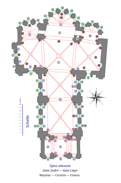 L'abbaye Saint-André-Saint-Léger de Meymac est une ancienne abbaye bénédictine située à Meymac, en Corrèze, en Nouvelle-Aquitaine. Son église abbatiale est classée au titre des monuments historiques sur la liste de 1840. L'ensemble est considéré comme un bon exemple de construction mauriste dans le centre de la France. Selon la tradition, un ermite nommé Mamacus aurait bâti au VIe siècle une petite église dédiée à saint André, consacrée en 546 par l'évêque de Limoges. Le 3 février 1085, Archambaud III, vicomte de Comborn, fonda le prieuré de Meymac qui accueillit quelques moines bénédictins ; en 1146, grâce à la contribution d'Ebles II de Ventadour, le prieuré devint abbaye. Les moines suivaient la règle de saint Benoît. L'abbaye fut pillée et brûlée pendant la guerre de Cent Ans, en 1379, et déjà en 1435 les appartements étaient signalés en ruine ; l'église et les bâtiments conventuels se détériorèrent au XVIe siècle et, au XVIIe siècle, cloître, chapitre, réfectoire et dortoirs avaient disparu. Affiliée en 1648 d'abord à l'ordre de Cluny, puis à la Congrégation de Saint-Maur, l'abbaye fut relevée de ses ruines par des travaux menés de 1679 à 1689. À la Révolution, l'abbaye servit de caserne avant d'être vendue par lots ; elle servit ensuite de grenier à foin et d'écurie au XIXe siècle. Repérée par Prosper Mérimée, elle fut inscrite sur la liste des monuments historiques de 1840 et des travaux de restauration débutèrent en 1846. Rachetée par la ville en 1823, l'ancien cloître et certains bâtiments conventuels furent démolis et l'aile sud reconstruite à l'identique. À l'origine, les bâtiments formaient avec le mur sud de l'église une cour carrée ; du réaménagement du XVIIe siècle subsistent seulement le corps situé dans l'axe du transept et ses deux pavillons. Aujourd'hui, l'aile qui jouxte l'église abrite le musée Marius-Vazeilles et l'autre aile accueille le Centre d'art contemporain.
