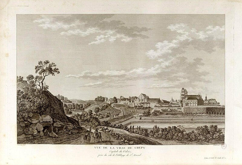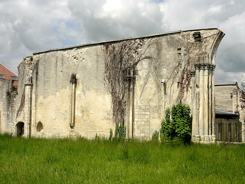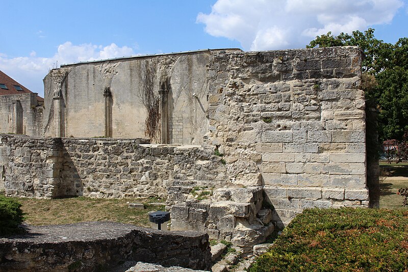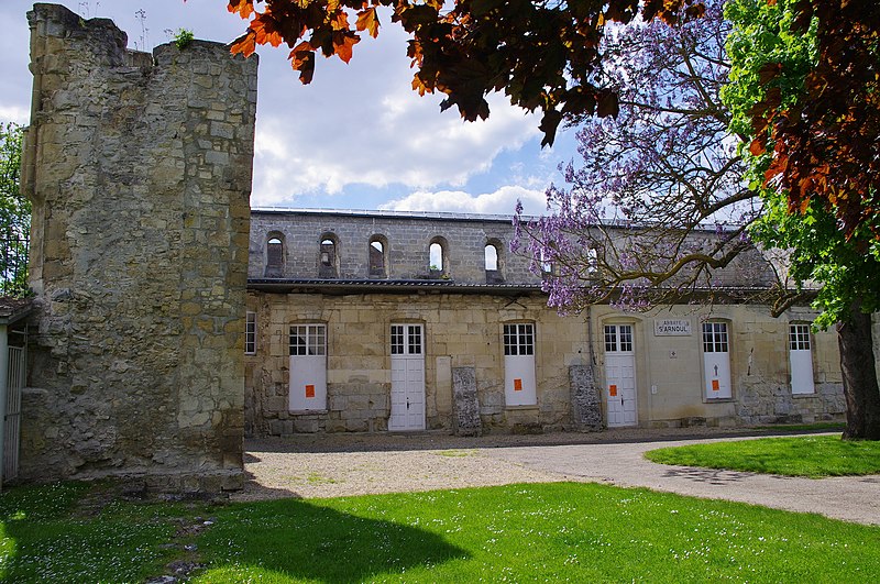 L’ancien prieuré Saint-Arnould se situe à Crépy-en-Valois (Oise), au nord‑est de l’enceinte médiévale, en surplomb du vallon du rû des Taillandiers, face à l’église Saint‑Denis. Il prend ses origines dans un chapitre de chanoines installé vers 935‑943, remplacé par une abbaye bénédictine fondée par le comte Gautier II le Blanc en 1008, puis donné à l’ordre de Cluny lors de la réforme initiée au XIe siècle. Intégré à la congrégation clunisienne, le prieuré bénéficia de l’exemption et d’importantes dotations ; la charte de fondation prévoyait vingt‑huit moines et cet effectif fut même dépassé à la fin du XIIIe et au début du XIVe siècle. Le monastère connut une prospérité soutenue par de nombreuses donations jusqu’au début du XIIIe siècle puis déclina sous l’impact de la guerre de Cent Ans : le chœur de l’église fut incendié par les Anglais au XVe siècle et ne fut jamais reconstruit, si bien que le prieuré mit près d’un siècle à retrouver un fonctionnement normal. Aux XVIe et XVIIIe siècles, les prieurs commendataires et les occupants entreprirent des renouvellements de mobilier et d’importantes reconstructions des bâtiments conventuels ; le logis du prieur du XVIIIe siècle devint une résidence privée et l’aile orientale fut utilisée comme pensionnat jusqu’en 1940, ce qui a contribué à sa préservation. Les vestiges médiévaux ont été inscrits au titre des monuments historiques en 1943 et le portail du logis (milieu du XVIIIe siècle) est également protégé, malgré des démolitions de murs médiévaux lors d’un réaménagement municipal en 1964. L’Association pour la restauration et l’animation de Saint‑Arnoul a pris en charge la sauvegarde de l’aile orientale : la galerie du cloître et trois salles voûtées d’ogives ont été restaurées et ouvertes au public ; ces parties de style gothique résultent d’au moins quatre campagnes de construction entre la fin du XIIe et le milieu du XIIIe siècle. La crypte romanique, dont subsistent notamment le mur occidental et une partie du mur méridional, attire l’attention pour ses dimensions exceptionnelles et son architecture inhabituelle pour la région, influencée par l’abbaye de Saint‑Benoît‑sur‑Loire ; selon l’abbé Carlier elle mesurait environ 16,50 m de largeur sur 25 m de longueur. On y trouve sept piliers engagés, colonnes octogonales et chapiteaux richement sculptés aux motifs végétaux et figurés, dont la facture renvoie à l’art roman de la France moyenne et reste singulière dans le Valois. L’église abbatiale, de plan basilical sans transept, comportait une nef importante et deux tours de chevet ; après les destructions des XVe et XIXe siècles il ne subsiste que des éléments en élévation, des piliers du clocher nord et des fondations des tours. Le cloître conserve surtout sa galerie orientale en cinq travées ; la salle capitulaire, le parloir et le chauffoir, voûtés et pourvus de supports sculptés, témoignent des campagnes gothiques qui ont remanié les bâtiments conventuels. Les interventions archéologiques ont permis d’affiner la chronologie, mais le site a également subi des dégagements destructeurs au milieu des années 1960 ; des fouilles plus méthodiques ont été conduites à partir de 1975 puis dans le cadre d’un programme pluridisciplinaire lancé en 1997, sans que l’ensemble des vestiges ait pu être entièrement restitué. Aujourd’hui, la crypte est visible derrière une grille et les parties restaurées de l’aile orientale sont accessibles au public selon les périodes d’ouverture déclarées, tandis que d’autres vestiges (mur nord du bas‑côté, fondations des tours et portail du logis) restent lisibles depuis le domaine public.