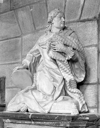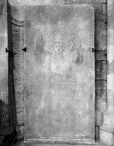 Le cellier : classement par arrêté du 16 juin 1939 - L'ancien logis abbatial : trois salons, chambre à coucher, salle à manger et leur décor (cad. EW 200) : inscription par arrêté du 9 mars 1979 - Les parties appartenant à l'Etat telles teintées en rouge et en vert sur le plan annexé à l'arrêté, à savoir : la cathédrale avec sa clôture extérieure, sa sacristie et son couloir, et la crypte Saint-Bénigne (cad. EV 362) ; le dortoir des bénédictins avec la clôture, le portail et le pavillon de gardien sur la rue du Docteur-Maret (cad. EV 362) ; le sol de la parcelle EV 362 correspondant notamment à l'ancien cloître ; le bâtiment du XVIIIe siècle de l'ancien palais abbatial, actuellement partie de l'école nationale des Beaux-Arts, y compris le portail, le mur sur la rue Michelet et le pavillon de gardien, ainsi que le sol de la cour sud (cad. E 363) ; le jardin contigu, à l'est, à l'ancien dortoir des bénédictins, à savoir la totalité de la partie non bâtie de la parcelle EV 363, située au nord du palais abbatial : classement par arrêté du 6 juin 2014
