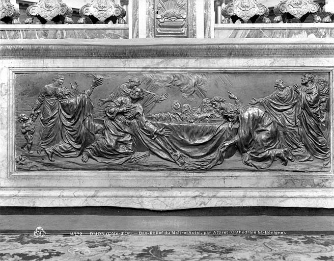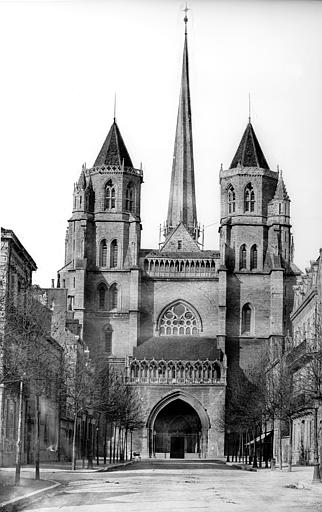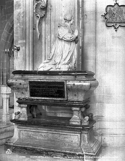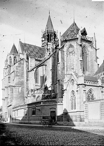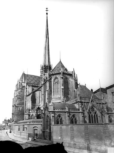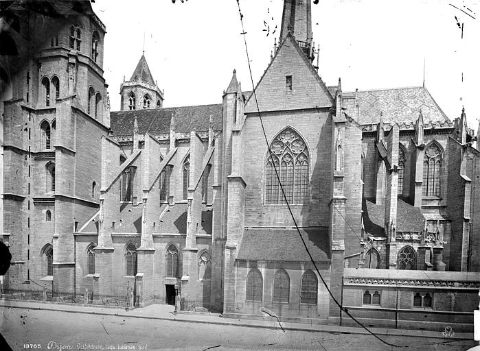 L'ancienne abbaye Saint-Bénigne de Dijon est un établissement bénédictin fondé au IXe siècle, situé au centre de Dijon, dont l'abbatiale dédiée à saint Bénigne est devenue cathédrale en 1792. L'ensemble, en partie détruit, conserve notamment une aile romane du XIe siècle, parmi les plus anciens bâtiments conventuels subsistants en France; il abrite depuis 1930 le musée archéologique de Dijon. À l'est du chevet de la cathédrale, le palais abbatial forme un bâtiment en L; une partie a été édifiée de 1767 à 1770 d'après les plans de l'architecte dijonnais Claude Saint-Père et présente un décor intérieur remarquable dans le salon et la salle à manger. Ce bâtiment néo-classique est resté inachevé : seule l'aile gauche du XVIIIe siècle fut réalisée et a été affectée à l'École des Beaux-Arts, l'aile en retour à l'est datant de 1958. Saisi comme bien national en 1793, le corps de logis du XVIIIe siècle fut occupé par l'évêché jusqu'en 1905 puis par l'école des Beaux-Arts; le site comprend aussi un cellier du XIIIe siècle et d'anciens logis datés des XVIIe et XIXe siècles. L'abbaye était initialement située hors du castrum de Dijon et reliée au noyau urbain par le développement d'un bourg; aujourd'hui elle occupe l'angle des rues Michelet, Mariotte, Danton et Condorcet, à l'ouest du centre actuel. L'origine de l'abbaye s'entoure de traditions liées au martyr Bénigne et à la relation rapportée par Grégoire de Tours, mais l'établissement est attesté dès le VIe siècle et appartenait aux évêques de Langres. Une communauté de moines est mentionnée dès le VIIIe siècle et la règle bénédictine y fut introduite vers 870 par l'évêque Isaac avec l'appui du roi Charles le Chauve. En 989, Guillaume de Volpiano réforma la communauté avec douze moines envoyés par Mayeul de Cluny; l'abbaye conserva cependant son indépendance juridique vis-à-vis de l'ordre clunisien. À partir de 1001 Brunon de Roucy et Guillaume de Volpiano entreprirent la reconstruction de l'église abbatiale, avec une basilique doublée d'une rotonde, travaux symbolisant le renouveau monastique et suscités par l'accroissement numérique de la communauté. Selon le texte, la communauté passa de douze moines en 990 à quatre-vingts en 1016, date d'achèvement de la basilique; la rotonde fut terminée peu après. Le successeur de Guillaume, l'abbé Halinard, fit reconstruire les bâtiments conventuels autour d'un cloître situé au nord de l'église dans les années 1030-1040. Un incendie majeur en 1137 ravagea Dijon et presque toute l'abbatiale; l'abbé Pierre de Genève la reconstruisit en grande partie en style roman. Après l'effondrement de la basilique en 1271, l'église fut rebâtie entre 1280 et 1393 en style gothique; l'abbé Hugues d'Arc acquit en 1287 la moitié de la terre de Ville-Comte. Au XVIIe siècle la congrégation de Saint-Maur transforma l'abbaye dans un goût classique; à la Révolution les ordres furent dissous, les derniers moines partirent en 1791 et l'abbatiale devint cathédrale dès 1792. Le musée archéologique, créé en 1831 et installé dans l'aile principale en 1930, occupe au niveau 0 la salle capitulaire et le scriptorium du XIe siècle, au niveau 1 le dortoir gothique du XIIIe siècle et au niveau 2 des salles du XVIIe siècle. L'abbaye bénéficie de protections au titre des monuments historiques : le cellier a été classé le 16 juin 1939 et l'ancien logis abbatial inscrit le 9 mars 1979. La salle capitulaire, datée de la première moitié du XIe siècle, est la plus ancienne salle capitulaire encore en élévation en France; elle conserva sa fonction jusqu'au XVe siècle et a servi de lieu d'inhumation, puis fut transformée en cave par les mauristes selon le plan de 1670. La salle attenante, longue de trente mètres et elle aussi du XIe siècle, est identifiée comme le scriptorium ; le relèvement du niveau du sol a fait de cet ancien rez-de-chaussée une crypte et les accès extérieurs vers le cloître ont été condamnés; elle abrite aujourd'hui des collections antiques du musée. Le dortoir des moines, élevé à la fin du XIIIe siècle au-dessus du scriptorium et voûté en ogives, fut surélevé par les mauristes en 1652 pour créer de nouvelles cellules; ses larges baies et la toiture de tuiles polychromes datent de ces transformations; il contient aujourd'hui les salles médiévales du musée. Le palais abbatial accueille l'École nationale supérieure des beaux-arts de Dijon et la maladrerie, placée à l'entrée du site, recevait autrefois pèlerins et voyageurs. Le cloître roman, formé de quatre ailes et adossé en angle droit à l'église, desservait la salle capitulaire, le scriptorium et le dortoir; les autres bâtiments conventuels ont disparu en élévation et l'on y a mis au jour soixante-cinq sépultures réparties entre moines, seigneurs, abbés, un duc, un curé et d'autres inhumations. La rivière du Raisne traverse les jardins inférieurs de l'abbaye et, au Moyen Âge, l'investiture du maire et des échevins se déroulait dans le cimetière de l'abbaye face au portail de l'église Saint-Philibert. Les décors sculptés sont nombreux : plusieurs tympans ornèrent l'abbatiale et le cloître, certains connus par gravure ou retrouvés dans les maçonneries et conservés au musée ; parmi eux figurent un tympan représentant le Christ en majesté entouré des quatre vivants attribué à la fin du XIIe siècle et un tympan de la Cène placé à la porte du réfectoire attribué au second tiers du XIe siècle. Une clé de voûte en pierre d'Asnières datée 1281-1287 et divers éléments sculptés enrichissent le programme décoratif conservé au musée archéologique. Le site a livré de nombreuses sépultures et plaques funéraires, dont un rouleau des morts de 1439-1441 conservé à la Bibliothèque de Troyes; au total 86 sépultures ont été retrouvées et certaines tombes ou dalles sont conserv