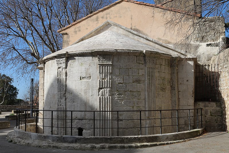 Chapelle Saint-Jean-de-Moustiers (précédemment dénommée Eglise basse de Saint-Césaire) : classement par liste de 1840 - Ancienne église Saint-Blaise : classement par arrêté du 16 novembre 1908 - Porterie du Grand Couvent, rue du Grand-Couvent : tour, passage au-dessus de la rue, logis de l'abbesse, portail d'entrée, maison 1906 et les éléments anciens qu'elle renferme (cad. AE 349, 350, 501 à 504) : classement par arrêté du 21 juillet 1989