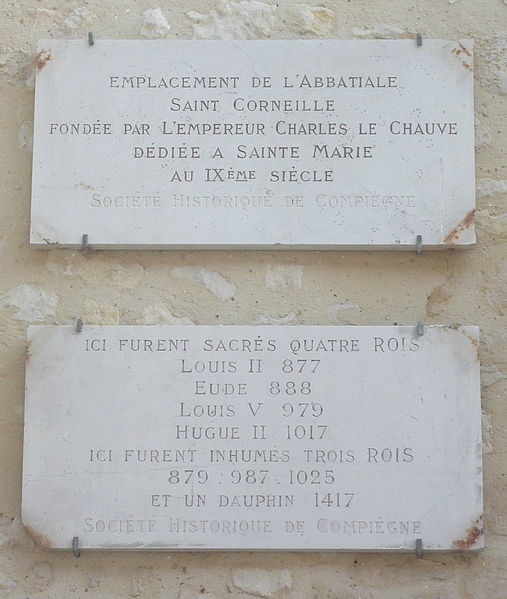 L'ancienne abbaye Saint-Corneille, située à Compiègne dans l'Oise, à environ 75 km au nord de Paris, abrite la Bibliothèque municipale Saint-Corneille. Fondée sous le nom de Notre-Dame ou Sainte-Marie par Charles II le Chauve à l'emplacement d'un palais mérovingien, elle devint une abbaye impériale et royale inspirée du modèle d'Aix-la-Chapelle. Consacrée par le pape Jean VIII, l'abbaye reçut d'importants privilèges et rassembla des reliques prestigieuses, attirant pèlerins, princes et conciles. Son église et son ensemble abbatial servaient de chapelle palatine et furent le lieu de sacre, d'inhumation ou de reconnaissance de plusieurs souverains carolingiens et robertiens. Au fil des siècles l'abbaye étendit des domaines et des possessions dans le Tardenois, le Beauvaisis, l'Amiénois, le Boulonnais, le Soissonnais, le Laonnois, jusqu'en Ardennes et Bourgogne. Après des périodes de destructions et de reconstructions — invasions, incendies et remaniements — son architecture évolua et l'ensemble fut modifié à plusieurs reprises au Moyen Âge et à la Renaissance. Au XIIe siècle l'abbaye connut une réforme : les chanoines furent remplacés par des moines bénédictins en 1150, réforme confirmée et soutenue par des bulles pontificales. La commende et l'affaiblissement des ressources, puis la réunion de sa mense à l'abbaye royale du Val-de-Grâce, marquèrent un long déclin avant la Révolution. Les abbés et les religieux conservèrent cependant jusqu'à l'époque moderne une juridiction étendue sur la ville de Compiègne et la vallée de l'Oise, des privilèges de foire et des droits seigneuriaux. À la Renaissance et aux siècles suivants les abus de la commende et les tensions avec les bourgeois et l'évêché de Soissons se firent plus fréquents, malgré des dons royaux et la présence de personnalités ecclésiastiques. Les bénédictins de la congrégation de Saint-Maur occupèrent l'abbaye à partir de 1626 ; la mense fut réunie en 1658 à celle du Val-de-Grâce. La Révolution porta un coup décisif : l'abbaye fut déclarée bien national en 1791, profanée et pillée en août 1793, puis ses bâtiments vendus et transformés en entrepôts ; un décret du Premier consul ordonna sa destruction, effective en 1822. Les bâtiments restants furent presque entièrement brûlés en 1940 lors d'un bombardement ; ne subsistent aujourd'hui que des vestiges, dont le cloître daté du XIIIe siècle, des éléments du clocher et de l'avant-nef, ainsi qu'un pan de mur avec deux gargouilles visible depuis la place du marché aux herbes. Le cloître et les restes du clocher ont été classés monument historique le 26 octobre 1964, et les sous-sols de l'ancien réfectoire inscrits le 28 septembre 1944. Parmi les trésors liturgiques et reliquaires que l'abbaye a conservés figuraient le Saint-Suaire et des reliques de saint Corneille et de saint Cyprien, qui firent sa réputation de sanctuaire de pèlerinage. Voltaire évoqua à tort la présence d'un « Saint Prépuce », alors que la relique conservée à Saint-Corneille au XVIIIe siècle était en réalité le couteau associé à la circoncision. De l'implantation médiévale jusqu'au XVIIIe siècle, l'abbaye posséda huit barons fieffés chargés de sa garde et des cérémonies, privilège maintenu jusqu'en 1789. Aujourd'hui l'ancien ensemble abbatial accueille, depuis 1959, l'une des bibliothèques municipales de Compiègne ; les locaux, comprenant vestiges anciens et édifices modernes, ont été fermés pour travaux en 2005 et la nouvelle bibliothèque inaugurée le 15 décembre 2007. La bibliothèque conserve dans ses réserves des ouvrages provenant de l'abbaye, et la galerie d'objets comprend notamment un diptyque byzantin réemployé au XIIIe siècle pour la reliure d'un manuscrit de Saint-Corneille. L'histoire millénaire de l'abbaye, marquée par sa richesse, ses privilèges, ses remaniements architecturaux et sa destruction, reste étroitement liée à celle de la ville de Compiègne et du Valois.