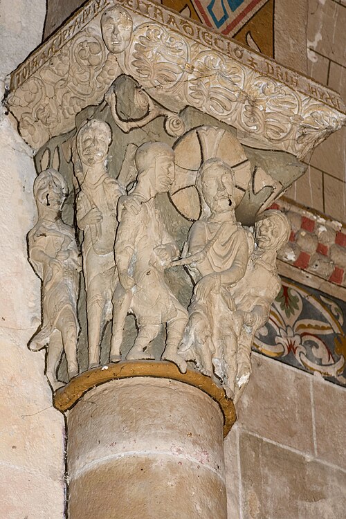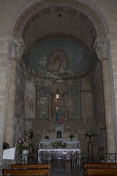 L'église présente un chevet roman en deux campagnes de construction et un intérieur qui a été largement transformé par les restaurations, mais conserve des sculptures romanes aux chapiteaux des absidioles et une mosaïque d'époque romane derrière le maître-autel. Ces mosaïques, datées de la fin du XIe et du début du XIIe siècle, couvrant autrefois l'abside, ont été redécouvertes lors de travaux en 1869 ; elles forment huit panneaux comprenant rinceaux, entrelacs, rosace géométrique et compartiments ornés d'animaux — félins, aigles et un chien poursuivant un lièvre — et semblent appartenir à la même tradition atelier que celles de Saint-Sever, Lescar, Moissac et Layrac. Parmi le mobilier, le maître-autel de forme-sarcophage provient de l'atelier des frères Mazzetti (1784) et est exécuté en marbres polychromes ; la sacristie conserve un mobilier en chêne du dernier quart du XVIIIe siècle, la chaire en chêne est d'inspiration néo-gothique du XIXe siècle, et plusieurs éléments liturgiques en fer forgé datent aussi de la fin du XVIIIe siècle. Une dalle funéraire en marbre blanc rappelle l'abbé Vincent de Caste, qui affilia l'abbaye à Saint-Maur en 1679 et rédige peut‑être son histoire en 1677.