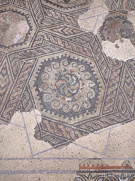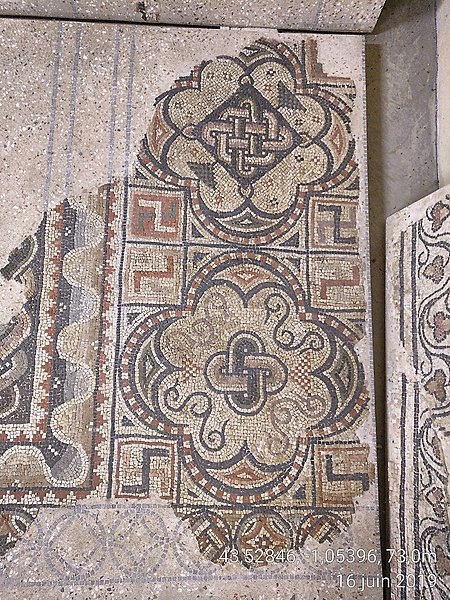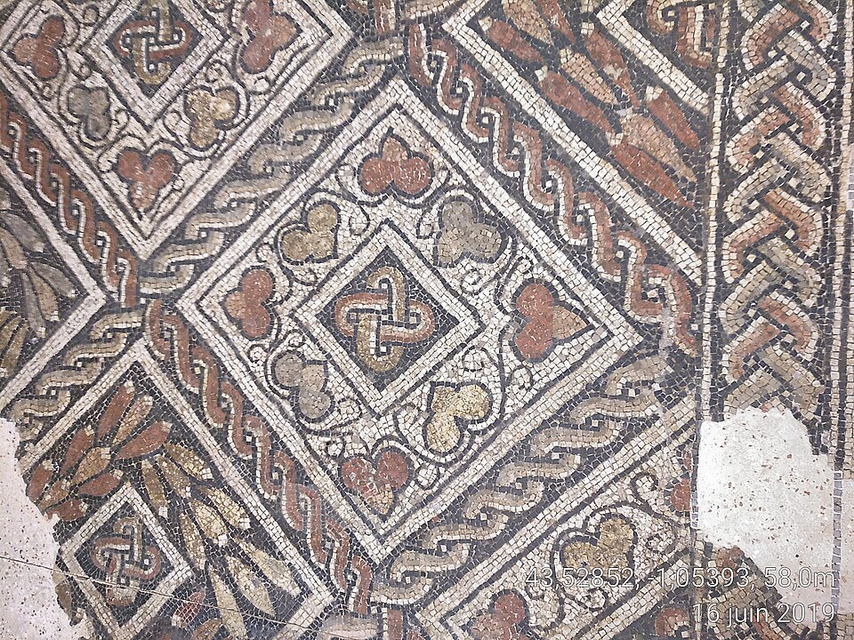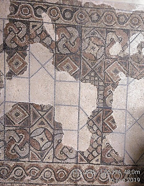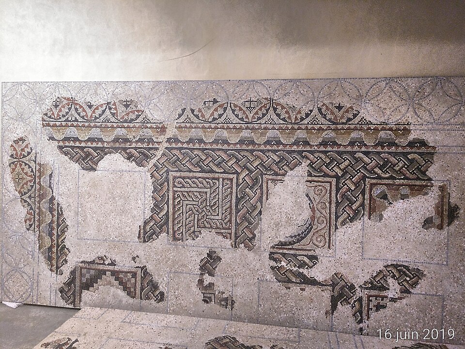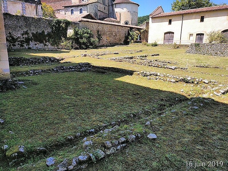 Les recherches archéologiques, relancées après la découverte d'une mosaïque en 1957, ont été conduites de 1958 à 1966 par l'archéologue J. Lauffay, qui a mis au jour le vaste établissement des IIIe et IVe siècles, des thermes avec caldarium, tepidarium et frigidarium chauffés par un hypocauste, ainsi qu'un atrium bordé de galeries ; une seconde villa est signalée à l'est du bourg, à Barat-de-Vin. Le logis abbatial, reconstruit à la fin du XVe ou au début du XVIe siècle sur des éléments plus anciens, livre de la fenêtre d'observation une vue sur des fragments de mosaïques et les vestiges du système hypocaustique enfouis sous son sol. Un sarcophage monolithe, découvert lors de fouilles en 1960, se trouve devant le portail septentrional.