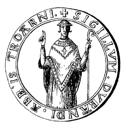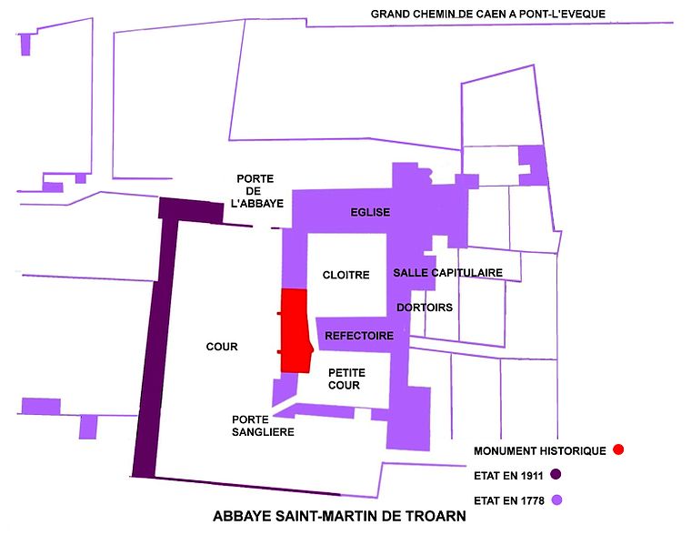 Les armoiries anciennes de l'abbaye restent mal établies : l'Armorial général de 1696 la représente d'azur à trois fleurs de lis d'or mal ordonnées bordé de gueules semé de huit besans d'argent, tandis que les cachets du XVIIIe siècle montrent les fleurs de lis régulièrement disposées. Sur les sceaux, en 1271 saint Martin apparaît en costume épiscopal bénissant et tenant un livre de la Règle, et le sceau de Philippe de Touchet montre un abbé debout, tête nue, tenant une crosse et un livre de la Règle. Restent donc des vestiges dispersés, des plans et des documents qui témoignent de l'importance territoriale, spirituelle et architecturale de l'abbaye Saint-Martin de Troarn.