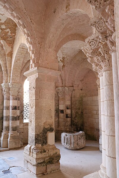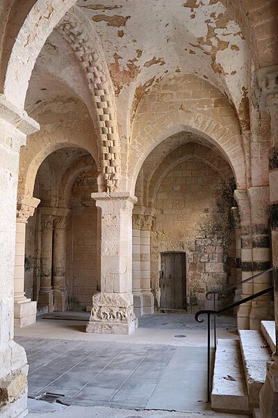 L'ancienne abbaye Saint-Pierre est située à Airvault, dans les Deux-Sèvres. Elle est en grande partie en ruines ; l'élément le mieux conservé est l'abbatiale Saint-Pierre. Les bâtiments visibles datent de la fin du XIIe ou du début du XIIIe siècle et constituent la partie la plus importante de l'abbaye, dont la première fondation remonte à 990, ainsi que celle de l'église abbatiale. L'abbaye a d'abord été une collégiale de chanoines réguliers de Saint-Augustin, fondée vers 990 par Audéarde, épouse du vicomte Herbert Ier de Thouars. Dans la seconde moitié du XIe siècle, une reconstruction de l'église et probablement des bâtiments conventuels fut entreprise. Pierre de Sainte-Fontaine, moine venu de l'abbaye de Lesterps, fut envoyé pour réformer la communauté et nommé premier abbé d'Airvault en 1096 ; il entreprit la construction de l'abbatiale et mourut le 7 août 1110. Selon la Chronique de Saint-Maixent, l'église fut consacrée en 1100, puis elle subit d'importantes modifications et adjonctions. De grands remaniements eurent lieu à la fin du XIIe siècle et au XIIIe siècle, portant principalement sur la façade et l'intérieur de l'abbatiale, et l'abbaye fut réédifiée. La communauté se dispersa presque totalement au XVe siècle à cause des guerres de Religion. Le logis abbatial fut partiellement reconstruit vers 1650 et, au XIXe siècle, le percement de la rue de la Gendarmerie a séparé certains bâtiments de la salle capitulaire et des cloîtres attenants. Plusieurs ensembles de bâtiments sont conservés, parmi lesquels le cuvier, la prison, la chapelle, les caves surmontées du logis abbatial et la porte monumentale. L'église, construite à la fin du XIIe siècle, a servi initialement de collégiale ; le reste des constructions date des XIIe et XIIIe siècles. Parmi les abbés d'Airvault figurent Pierre Ier de Sainte-Fontaine (1096-1110), Gislebert (1112-1132), Geoffroy (1132-1135), Hugues Maret (1135-1168), Guillaume Ier (1168-1176), Philippe (1176-1188), Matthieu (1188-1192), Pierre II (1192-1219), Jean Ier, Jean II, Vincent (1255-1284), Jean III Dabin, Jean IV Jamin, Pierre III, Pierre IV, Pierre V, Thibaud, Acton, Ramnulfe, Pierre VI Léal (1414-1449), Pierre VII (1449-1477), Nicolas Ier Asse du Plessis-Asse (1477-1497), François Ier de Liniers (1497-1498), Hilaire Acton (1498-1499), François II Brichard (1499-1500), Simon Pidoux (1500-1516), François III Tiercelin (1516), André Asse du Plessis-Asse (1516-1534), Pierre VIII Rouillard (1534-1546), Jacques d'Escoubleau de Sourdis (1546-1564), Nicolas II Lermiger, Henri Ier d'Escoubleau de Sourdis, le cardinal François IV d'Escoubleau de Sourdis, Louis Gouffier de Caravas (1628-1631), Henri II d'Escoubleau de Sourdis (1631-1645), Michel Poncet de La Rivière (1645-1677), Henri III de Pichard des Farges (1677-1690), le cardinal Guillaume II Dubois (1690-1723), Aymard-Robert de Prie (1723-1759), Edmond-Sébastien-Joseph de Stoupy (1759-1786) et Claude-Louis du Houx de Dombasles (1786-1792). Après la création du diocèse de Maillezais en 1317, transféré en 1648 à La Rochelle, l'abbaye en dépend. L'abbatiale Saint-Pierre est classée monument historique en 1914 ; le terrain bordant l'église a été classé en 1934 et un autre terrain inscrit la même année ; les restes de l'ancienne abbaye ont été classés en 1987 et les vestiges de l'enceinte abbatiale ont été inscrits par arrêté du 30 septembre 2024.