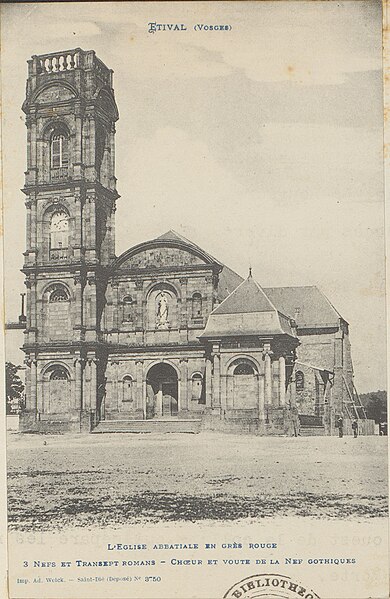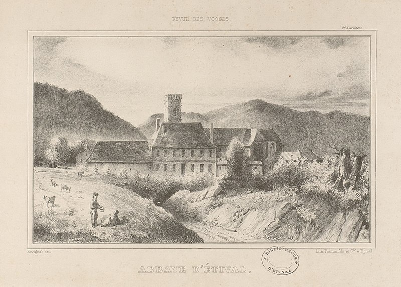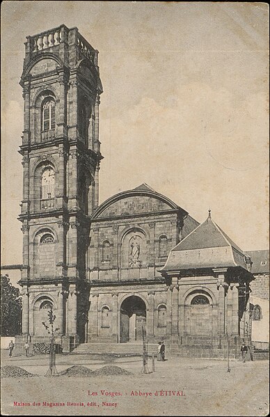 L'abbaye Saint-Pierre d'Étival, collégiale fondée et placée par Richarde sous la suzeraineté des chanoinesses d'Andlau, est située dans la vallée de la Meurthe, sous la côte de Repy et la Pierre d'Appel. Le premier monastère aurait été construit au milieu du VIIe siècle et aurait observé la règle de saint Columban puis la règle bénédictine. Selon dom Calmet, le premier abbé connu porte le nom d'Echertus au IXe siècle. Après 1145, les chanoinesses d'Empire y placèrent des chanoines prémontrés dépendant de l'abbaye Notre-Dame-de-l'Assomption de Flabémont. Après la dissolution des chanoinesses d'Andlau au XVIe siècle, les prémontrés, affranchis de toute tutelle, développèrent l'abbaye et évitèrent la commende. Au Moyen Âge, l'abbaye fut fortifiée. Par lettre d'Avignon datée du 26 mai 1387, Pierre Aycelin de Montaigut délégua à l'abbé d'Autrey le pouvoir d'absoudre, après pénitence suffisante, les moines et convers d'Étival excommuniés, suspendus ou interdits pour des manquements graves tels que violences, jeux interdits, vie déréglée ou oubli des devoirs religieux. Jusqu'au milieu du XIIe siècle, on relève la présence de chanoines séculiers avant la transformation en maison de l'ordre de Prémontré. À l'origine, l'abbaye était un établissement mixte, accueillant moines et moniales. L'abbé était vassal de l'abbesse d'Andlau et devait parfois dire la messe à Andlau lors des fêtes de saint Pierre et saint Paul ; l'abbesse conserva le droit de désigner un nouvel abbé au moins jusqu'en 1685. L'abbaye se réclamait « de nul diocèse », refusant la sujétion aux évêques de Toul, à l'instar de Moyenmoutier, Senones et du chapitre de Saint-Dié. Cette opposition prit une grande ampleur au début du XVIIIe siècle sous l'abbé Charles-Louis Hugo, qui s'opposa à l'évêque de Toul Scipion Jérôme Bégon dans un contexte où le duc Léopold, les papes et la cour de France jouèrent des rôles opposés. L'abbé Hugo fut promu évêque de Ptolémaïs en 1729 par le pape Benoît XIII, à titre in partibus. En 1726, l'architecte Nicolas Pierson, frère convers prémontré, réalisa le corps de logis nord et deux tours encadrant la façade classique de l'église, la tour droite n'ayant toutefois été élevée que jusqu'à sa base ; un projet antérieur plaçait les tours de part et d'autre du chœur. Le dernier abbé mourut en 1739, mais l'on recense encore 29 chanoines en 1790 ; les archives de l'ordre de Prémontré mentionnent 11 chanoines en 1698, 29 en 1768, et en 1790 dix chanoines résidents, huit exerçant en paroisse, ainsi que cinq ecclésiastiques et dix moines. L'abbaye fut placée en commende sous l'évêque de Toul, Bégon, et un couvent prémontré y demeura, même après la création de l'évêché de Saint-Dié en 1776. Depuis la Révolution et l'Empire, le site constitue le cœur de la commune d'Étival-Clairefontaine, anciennement partie du Bas-Ban d'Étival, et les bâtiments conventuels et le palais abbatial ont été réaffectés en habitations, écoles, lieux publics, hangars et magasins. Ce lieu autrefois fortifié tend à être assimilé au hameau voisin du Viviers ; seule l'église collégiale et une partie du presbytère sont restées affectées au culte paroissial. L'abbaye a été ravagée à plusieurs reprises : elle fut détruite par le feu en 1569 et de nouveau en 1646. Inquiet des pouvoirs croissants de l'abbé, l'évêque de Toul changea le statut de l'abbaye en prieuré, sans que la vie religieuse semble en avoir été compromise. En 1944, la tour nord fut détruite par les Allemands ; les architectes laissèrent ses ruines et firent édifier la tour sud, qui ne comportait qu'un étage depuis le XVIIIe siècle, en respectant sensiblement les proportions de la tour disparue. L'église est classée monument historique depuis la première liste de 1840 ; les autres bâtiments de l'abbaye — le logis abbatial, la galerie du cloître et le mur d'enceinte — sont inscrits depuis le 7 mai 1986. Parmi les abbés et titulaires connus figurent, de Gilbert (1146-1150) à Charles-Louis Hugo (1723-1739), une succession de noms tels que Gilbert, Hugues I, Ramband, Gautier (ou Valterus), Garnier, Géraldus, Hamandus, Albert, Nicolas, Vidric, Hugues II, Étienne, Richier, Lisiard, Thierry, Philippe, Gérard de Ville, Simon, Dominique de Rambervillers, Albert de Onville, Thierry de Moulin, Pierre I, Dominique de Nancy, Vuillaume de Malhoste de Lunéville, Dominique de Midrevaux, Gérard d'Essey, Pierre de Corcieux, François Fagnozel, Jean Féal, Didier et Jean Banviet, Antoine Nicolas Saffrois, Jean de Maisières, Antoine Doridant, Didier et Jean Frouard, Hilarion Rampant, Epiphane Louis, Siméon Godin et Charles-Louis Hugo.