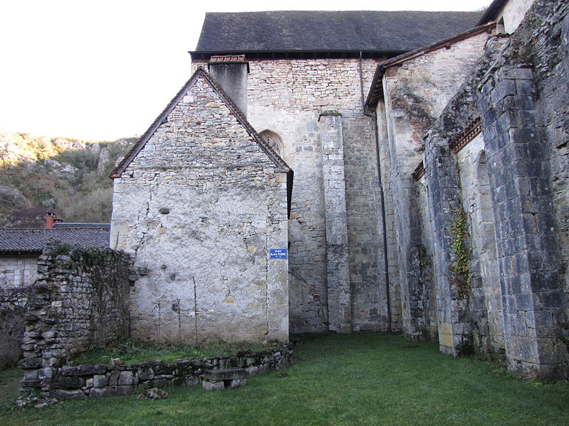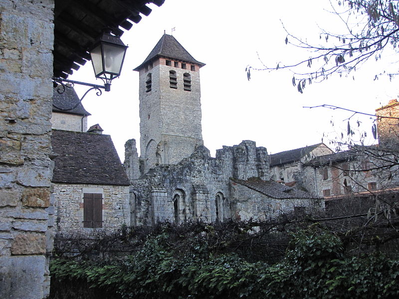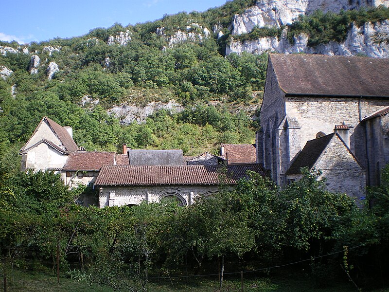 L'ancienne abbaye Saint-Pierre de Marcilhac-sur-Célé se situe à Marcilhac-sur-Célé, dans le Lot (Occitanie). Le nom de Marcilhac apparaît dès 654 dans le testament de saint Didier, évêque de Cahors. Une cella y aurait été établie par des bénédictins de Moissac fuyant les Normands, et Pépin, roi d'Aquitaine, la prit sous sa protection en 845 ou 848. Au Xe siècle, l'abbaye devient indépendante et reçoit des libéralités vers 930 et 961. Des fouilles menées en 1968-1969 ont permis de restituer le plan initial du chevet et suggèrent une construction du milieu du XIe siècle, tandis que le portail sud, archaïque, est daté vers 1100 et certains chapiteaux du milieu du XIe siècle. Les parties hautes de l'abbatiale, avec arcs brisés et tours, sont attribuées au début du XIIe siècle, et la salle capitulaire et certains chapiteaux du cloître sont datés du XIIe siècle. Au XIIe siècle, l'abbaye possède une grande influence et de nombreux fiefs ; elle est propriétaire de l'église de Rocamadour, donnée en 1030, mais perd la maîtrise de ce lieu au profit de l'abbaye de Tulle après un long procès clos en 1193. Pendant la guerre de Cent Ans, l'église et les bâtiments conventuels sont dévastés par les grandes compagnies et l'abbaye tombe en ruine puis en grande pauvreté au XVe siècle. La famille Hébrard de Saint-Sulpice entreprend des restaurations pendant les abbatiats de Raymond et Guillaume d'Hébrard ; une partie des travaux gothiques est datée autour de 1500 et des blasons de La Roque-Toirac figurent sur une clé de voûte de la chapelle sud. Lors des guerres de Religion, des incendies détruisent de nouveau l'église et une grande partie des bâtiments ; des réparations sont engagées au début du XVIIe siècle, mais l'ensemble reste en mauvais état et, en 1679, le cloître est décrit comme détruit et inhabitable. L'abbaye est sécularisée en 1750 et l'église devient paroissiale ; les bâtiments conventuels sont vendus comme biens nationaux à la Révolution. L'église abbatiale, les ruines du cloître et des édifices attenants sont protégés au titre des monuments historiques au XXe siècle, avec des classements et inscriptions en 1906, 1939 et 1965, et le retable majeur a été restauré en 2010. Des projets de restauration ont été annoncés récemment, avec un financement régional envisagé et des travaux d'entretien menés dès 2012, tandis que des opérations de mécénat et de collecte de fonds ont soutenu l'achat d'un orgue et d'autres initiatives culturelles entre 2015 et 2016. L'église présente deux ensembles distincts : un ensemble roman des XIe-XIIe siècles comprenant un portail sud à tympan représentant un Jugement dernier, une nef romane en partie à ciel ouvert avec puissants piliers et chapiteaux sculptés, et une salle capitulaire aux chapiteaux historiés datée vers 1125 ; et une construction gothique du XVe siècle, qui assure la fonction paroissiale, avec chevet pentagonal, nef ogivale et transept important. L'intérieur conserve de nombreuses boiseries du XVIIe siècle, des fragments de retables, un ambon, un tableau de L’École de van Dyck et des fresques du XVe siècle ; des peintures romanes du XIIe siècle ont été récemment mises au jour dans l’absidiole nord. Sont également remarquables un clocher carré fortifié au XIVe siècle, des murs épais ornés de têtes de pierre au sommet des contreforts, le donjon de la demeure de l'abbé et, face à l'abbaye, une maison à pans de bois avec un linteau au chrisme où Henri IV aurait séjourné en 1580.