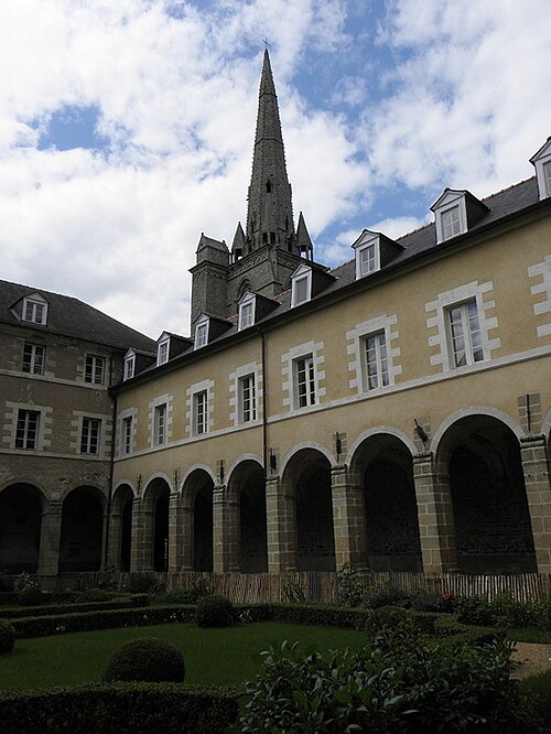L’ancienne abbaye Saint-Sauveur de Redon, en Ille‑et‑Vilaine, est une fondation bénédictine attribuée à Conwoïon en 832 et reconnue par Nominoë en 834 ; elle dépendait de l’ancien diocèse de Vannes et s’est développée sous le règne de Louis le Pieux. Les origines et la première histoire de la communauté nous sont surtout connues par les Gesta sanctorum Rotonensium, rédigés à la fin du IXe siècle en trois livres consacrés à la fondation, à la vie des moines et à la diffusion des reliques, et par une Vita Conuuoionis plus brève, sans doute du XIe siècle. L’attribution des Gesta à Ratvili, moine de Saint‑Sauveur devenu évêque d’Aleth, a été proposée par Ferdinand Lot, mais l’éditrice moderne Caroline Brett date le texte entre 868 et 917‑920 et reste prudente quant à l’auteur. Conwoïon quitta Vannes comme archidiacre pour fonder l’abbaye avec six compagnons ; les cofondateurs mentionnés sont Tethwin, Gerfroi, Fivetein, Conhouarn, Condéloc, Riowen et Lohémel, et la première installation fut rendue possible par des dons de notables locaux. L’établissement reçut de nombreux autres legs de seigneurs et de machtierns régionaux, parmi lesquels Condeloc, Conhoiarn, Guincalon et Riwalt, qui assurèrent sa croissance. Sous la menace des incursions vikings au milieu du IXe siècle, les moines se retirèrent temporairement en forêt et s’installèrent à Maxent, où Conwoïon mourut en 868 ; l’abbé Ritcand fit édifier une nouvelle église peu après. L’abbaye atteint son apogée aux XIe‑XIIe siècles, gérant vingt‑sept prieurés et douze paroisses et attirant des pèlerinages, comme l’illustre le don du prieuré de Sainte‑Marie par le pèlerin Draolius vers 1050. Alignée sur la réforme grégorienne, la communauté obtint entre 1073 et 1084 une bulle du pape Grégoire VII garantissant sa liberté d’élection, puis une confirmation papale de ses possessions envoyée par le pape Eugène III en 1147. Aux XIIe et XIIIe siècles l’abbatiale fut remaniée, le chevet roman ayant été remplacé par un chevet gothique et la tour de croisée élevée ; un clocher fut ajouté à la façade au début du XIVe siècle. À partir du XIIIe siècle l’abbaye connut des difficultés administratives et juridiques face à l’autorité ducale, et au cours des siècles suivants son rôle politique évolua avec celui de la ville de Redon. Au XVIIe siècle Armand‑Jean du Plessis, cardinal de Richelieu, fut nommé abbé commendataire et ordonna la reconstruction complète des bâtiments conventuels sous la direction du bénédictin mauriste Dom Denys Plouvier ; l’abbaye rejoignit alors la congrégation de Saint‑Maur. Un incendie en 1780 détruisit les parties occidentales de la nef, qui fut ensuite raccourcie et séparée du clocher. Après la Révolution, un petit collège municipal s’installa dans l’ancienne abbaye en 1804 ; les Eudistes achetèrent les bâtiments en 1839 et les transformèrent en établissement d’enseignement, fonction conservée depuis. Sur le plan architectural, de l’ensemble reconstruit au XVIIe siècle subsistent quatre bâtiments disposés autour du cloître, avec portes ouvrant sur les galeries et culots sculptés, auxquels s’ajoutent trois édifices du XIXe siècle liés à l’installation du collège et du lycée. Le cloître, élevé au XVIIe siècle sur ordre de Richelieu, présente des frontons ornés des armes de France, de Bretagne, de la congrégation de Saint‑Maur et du cardinal, et a fait l’objet d’une restauration complète entre 2009 et 2016. L’abbatiale comporte des éléments des XIe et XIIe siècles, un transept et une tour de croisée romane à deux étages réputée parmi les plus remarquables de Bretagne ; des fresques médiévales ont été mises au jour lors de travaux en 1950 et des vitraux modernes sont l’œuvre du maître verrier Jean‑Jacques Grüber. Parmi les aménagements intérieurs, la salle capitulaire a été transformée en chapelle dite de la Congrégation, la chapelle du collège conserve un orgue découvert par le musicien Pierre Pincemaille à la fin des années 1960, et un souterrain reliant le cloître à la Vilaine est visitable lors des Journées du Patrimoine. Des sceaux et un cartulaire ancien, composé de 147 parchemins couvrant les VIIIe‑XIIe siècles, témoignent de la richesse documentaire de l’abbaye. Le site, situé à Redon en Ille‑et‑Vilaine, est protégé au titre des monuments historiques : l’église l’était déjà depuis la liste de 1862, le clocher isolé depuis 1875, et l’ensemble de l’abbaye est classé depuis le 9 octobre 1990.