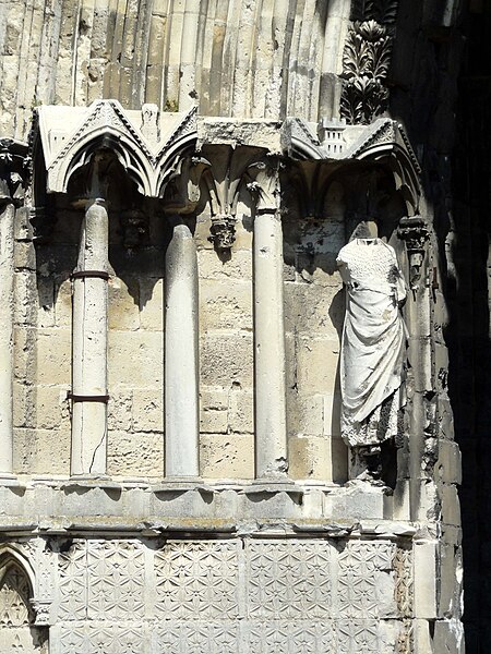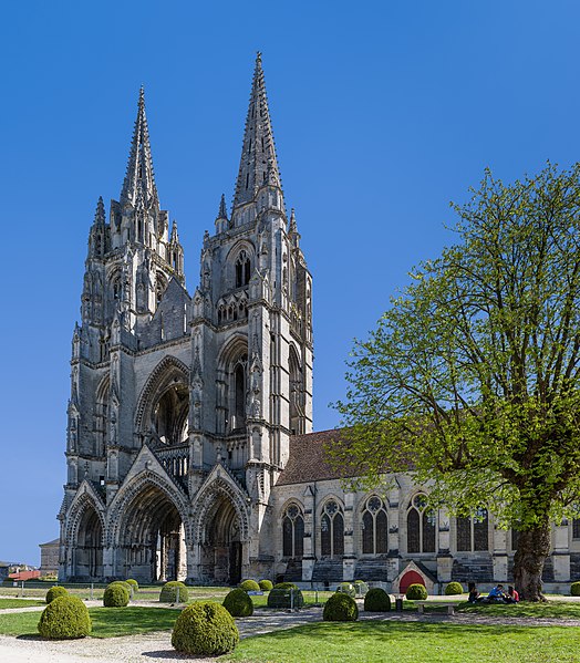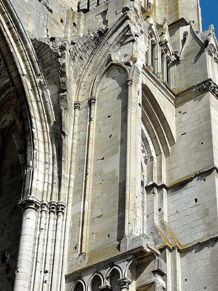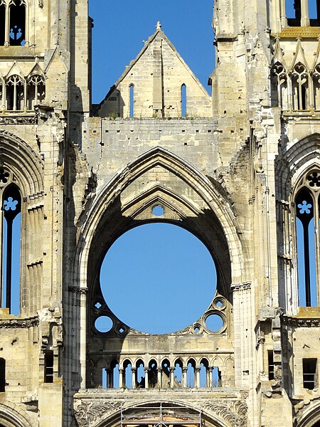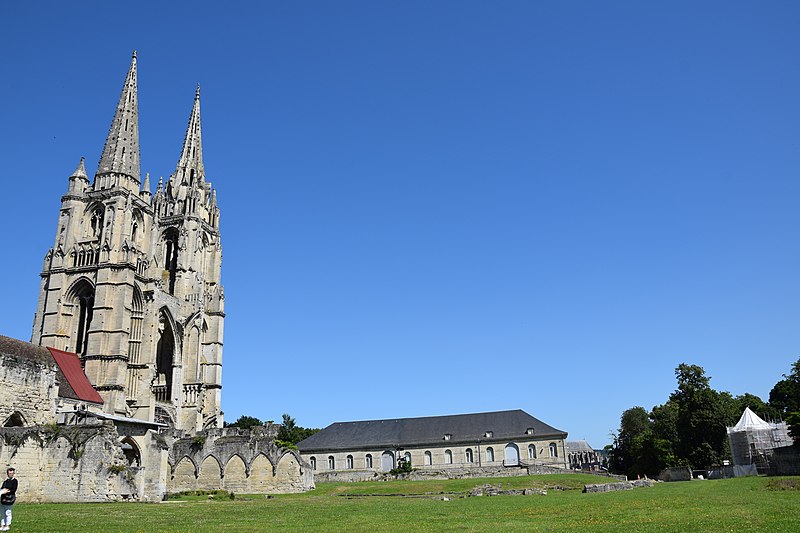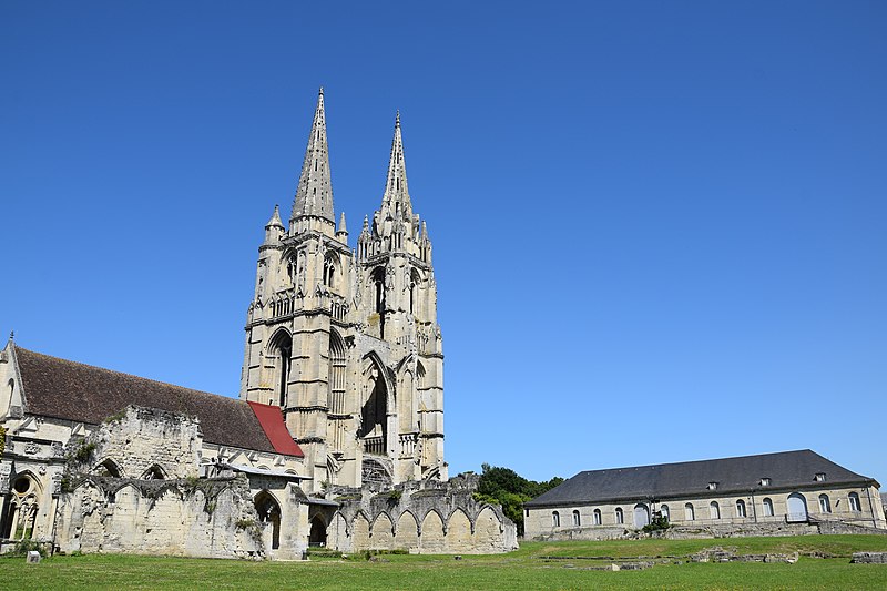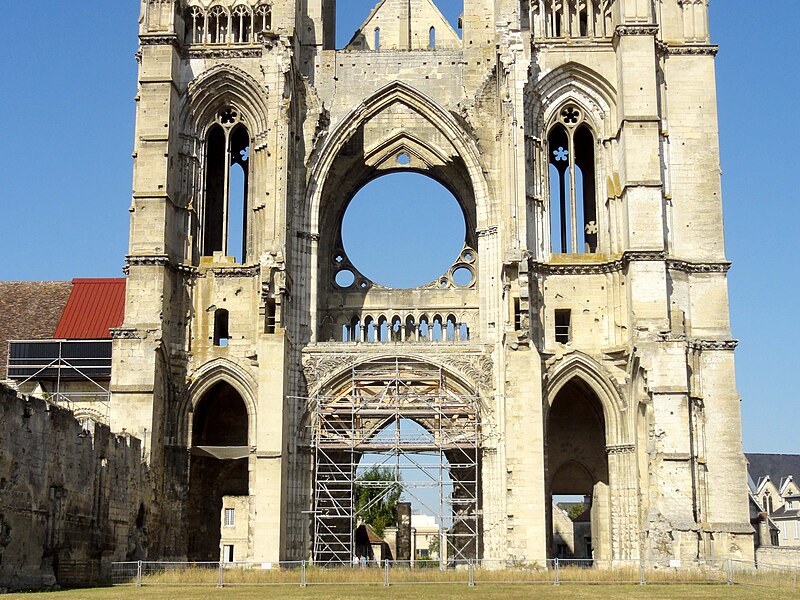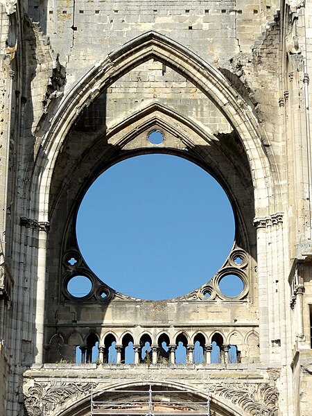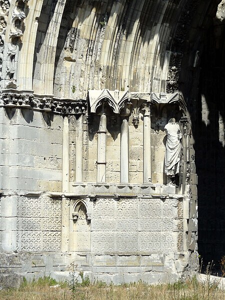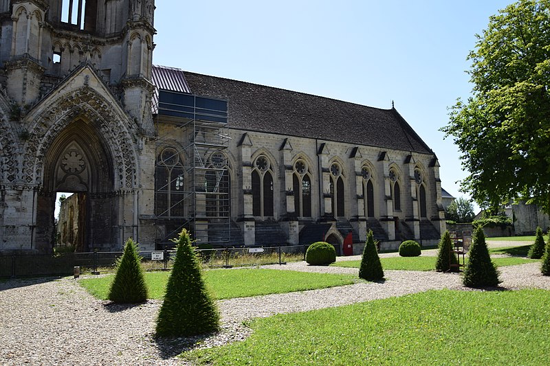 L'abbaye Saint-Jean-des-Vignes est une ancienne abbaye de chanoines réguliers fondée en 1076 par Hugues le Blanc sur la colline Saint-Jean, au sud‑ouest de Soissons (Aisne), de style gothique. Les clochers et les cloîtres datent des XIIIe et XIVe siècles. Hugues restitua cinq paroisses — Charly, Montlevon, Saint‑Aignan, Le Grand Rozoi et Arthaise — ainsi que deux moulins, et Philippe Ier confirma la fondation par lettres patentes en 1076 ; Gui Ier de Châtillon confirma aussi une donation la même année. Douze ans plus tard Hugues acheta trente arpents de vignes et fit d'autres donations en vignes et terres dans la paroisse de Charly ; cette seconde fondation fut confirmée par l'évêque Henri et par le fils d'Hugues, et le monastère prit alors le nom de Saint‑Jean‑des‑Vignes. Une communauté de chanoines johannistes suivant la règle de saint Augustin s'installa à l'abbaye, qui devint la maison mère de l'ordre. Le pape fixa le nombre de chanoines à 90 ; y vivaient aussi environ trente frères convers et, au début, quelques sœurs couturières. Les moines pratiquaient des soins médicaux à base de plantes, ce qui se reflète dans l'abondante décoration florale de l'abbaye, la plus vaste de Soissons, ville qui en comptait sept. À son apogée vers 1520, l'ensemble monastique formait un vaste domaine entouré d'enceintes et d'un fossé ; environ 150 moines en dépendaient et l'abbaye exploitait une trentaine de fermes et possédait une quarantaine de paroisses. Les chanoines exerçaient aussi des fonctions paroissiales ; l'habit des pères était blanc, celui des frères convers noir et violet. Les bâtiments visibles aujourd'hui datent principalement de la fin du XIIIe siècle, période qui vit l'élévation du cellier, des portails, du réfectoire et des cuisines ; la nef fut achevée au XIVe siècle tandis que les tours furent montées ultérieurement. Au Moyen Âge des dons royaux et seigneuriaux, dont ceux du cardinal Jean de Dormans, affluèrent, et des bienfaiteurs plus modestes léguèrent argent, terres ou maisons. Trois donations particulières servirent à l'instruction des novices : Raoul de Presles institua des bourses perpétuelles à Paris, Aubert de Bignicourt fonda le collège Sainte‑Catherine de Soissons en confiant sa direction aux moines, et Jean de Dormans donna la direction de Dormans‑Beauvais. La guerre de Cent Ans entraîna la construction de remparts vers 1375, et en 1414 le quartier général de Charles VI et des Armagnacs s'installa dans l'enceinte durant le siège et le pillage de la ville. Après les troubles on acheva la construction des tours lors de deux grandes campagnes, la grande tour et la petite tour étant terminées aux alentours de 1488–1495 et 1516–1520 respectivement. L'abbatiale, consacrée en 1478 par Jean Milet, était dédiée à la Vierge, à saint Jean‑Baptiste et à saint Jean l'Évangéliste. En 1544 la grande salle reçut Charles Quint du 13 au 16 septembre pour la préparation du traité de Crépy ; par la suite les ingénieurs d'Henri II proposèrent de raser le monastère pour des raisons stratégiques, mais l'abbaye fut finalement intégrée à l'enceinte de la ville, ce qui contraignit à réduire ses clos de vignes. À partir de 1566 les abbés furent souvent nommés commendataires par le roi et devinrent fréquemment absents, la direction religieuse relevant alors du prieur claustral. En 1567 les huguenots commandés par le prince de Condé s'emparèrent de Soissons : l'abbaye fut saccagée, l'église transformée en écurie, l'argenterie et les cloches fondues, la tuyauterie brisée, l'autel renversé, le clocher du réfectoire détruit et les archives presque entièrement perdues, les dégâts étant estimés à plus de 100 000 livres. À la Révolution les 72 moines furent chassés, le mobilier vendu et l'argenterie fondue et envoyée à la Monnaie de Paris ; le dernier grand prieur fut massacré en 1792 à Saint‑Firmin à Paris et l'abbaye fut transformée en manutention militaire avec l'installation de boulangeries. Les bâtiments, bien qu'épargnés de destructions massives grâce à leur usage militaire, se dégradèrent par manque d'entretien ; des vitraux se brisèrent, provoquant un incident lié à des morceaux de verre dans le pain, et il fallut ensuite des travaux de rénovation dont le coût fut estimé à 26 786 livres. Malgré des projets de démolition et la vente de matériaux, les tours furent préservées : l'église fut cédée en 1809 à un maçon et à un charpentier, des pierres furent réemployées pour des maisons à Soissons et la démolition s'arrêta après une vingtaine d'années, mais la nef disparut. Les restes ont nécessité des consolidations, notamment de la flèche, réalisées par des ferrements et des chaînages. Les vestiges appartiennent aujourd'hui à la Ville de Soissons et sont accessibles librement en saison ; la municipalité a engagé, avec le soutien des Monuments historiques, des collectivités et du mécénat, une opération de sauvegarde des deux tours, commencée en 2016 par la purge de la végétation et des éléments dangereux et prévue pour durer une dizaine d'années. Les clochers, les cloîtres, les vestiges des bâtiments et certains logis et terrains font l'objet de protections au titre des monuments historiques, distinguées par des classements et inscriptions effectués entre 1875 et 1947. Les armes de l'abbaye se blasonnent d'azur semé de fleurs de lys d'or, à un chevron de gueules chargé de six ou cinq roses d'argent, surmonté en chef d'un lambel de cinq pendants du même. Parmi les abbés réguliers, Raoul est attesté en 1214.