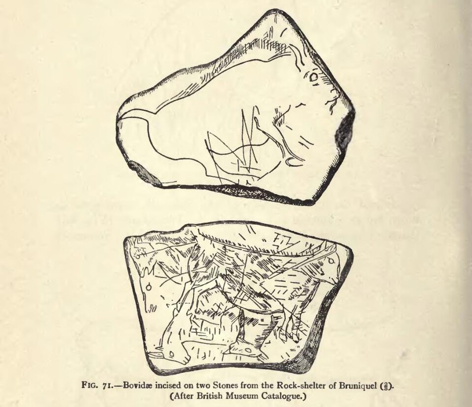 L'abri Lafaye, fouillé par Victor Brun, a livré au moins une sépulture humaine importante, dite « dame de Bruniquel », considérée comme l'une des plus complètes du Magdalénien et datée d'environ 13 500 ans, ainsi que la sépulture d'un enfant de trois à cinq ans. L'abri a aussi fourni des objets gravés et sculptés — une plaquette figurant deux silhouettes humaines vêtues de fourrures, un objet en bois de renne peut‑être lié à la pêche, et un propulseur à tête de cheval — et un important matériel de parure réparti entre plusieurs musées, notamment le muséum Victor Brun de Montauban et le musée d'Aquitaine à Bordeaux.
