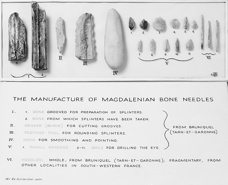 L'abri Montastruc a fourni des ensembles artistiques et utilitaires remarquables : le propulseur dit « cheval bondissant », conservé au musée d'Archéologie nationale et daté autour de 12 000 av. J.-C., des figurations gravées et sculptées, environ quatre-vingts plaquettes gravées, des harpons et divers objets de parure. Une partie importante de la collection de Peccadeau de Lisle provenant de Montastruc est entrée au British Museum en 1887. Au milieu du XXe siècle, Bernard Bétirac a mis au jour une rondelle en os perforée ornée d'une tête de bouquetin, découverte publiée par André Leroi-Gourhan en 1965 ; d'autres pièces de parure et pendeloques avaient déjà été identifiées au XIXe siècle. L'ensemble mobilier de Montastruc témoigne d'échanges culturels à longue distance et s'inscrit dans des aires de diffusion présentes du nord de l'Espagne au Périgord et au-delà.