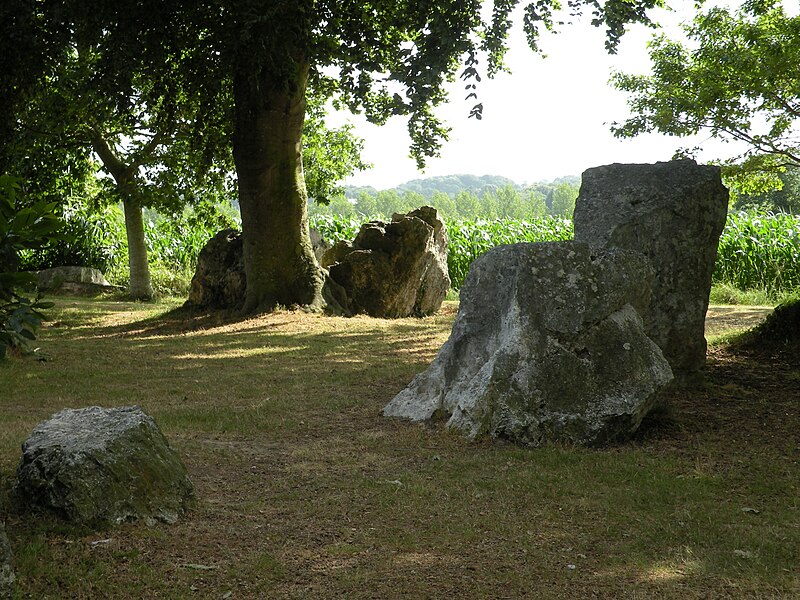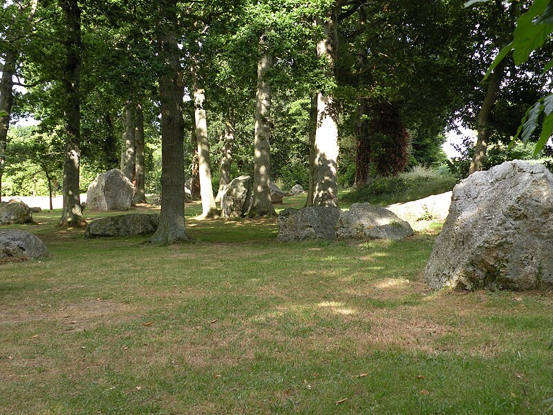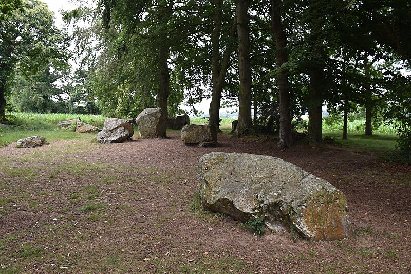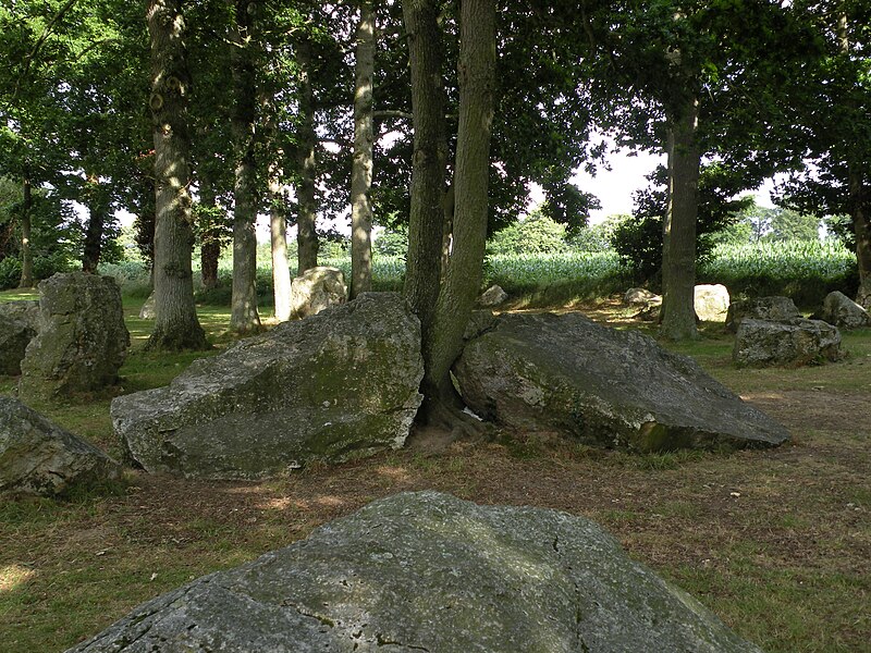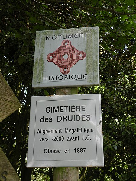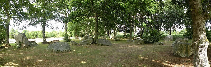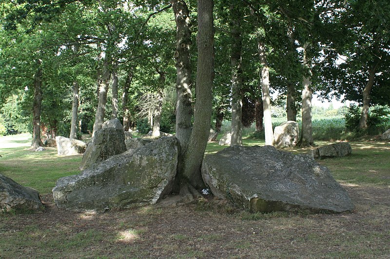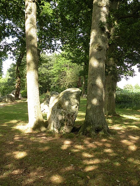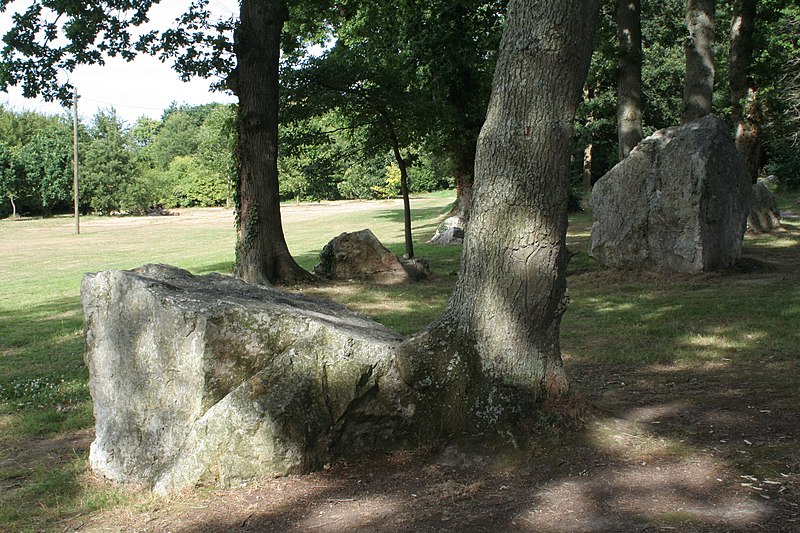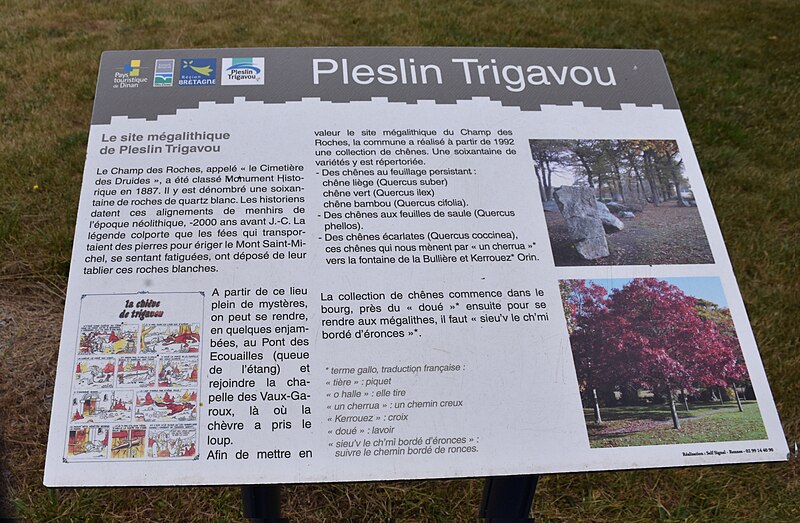 L'alignement du Champ des Roches, appelé aussi Cimetière des Druides, est un ensemble mégalithique situé sur la commune de Pleslin-Trigavou, dans les Côtes-d'Armor. Il est classé au titre des monuments historiques depuis 1889. Il se compose de 65 menhirs de quartz filonien blanc, dont 55 sont renversés, disposés en cinq rangs orientés ouest-est, avec quinze à dix-huit blocs par rang. Le plus grand menhir, appelé la Roche Tual, mesure 3,50 m de haut, 1,50 m de large et 2,50 m d'épaisseur. Quatre autres blocs de quartzite, situés à environ 100 m à l'ouest et alignés de la même façon, pourraient en faire partie, ce qui porterait la longueur maximale de l'ensemble à 200 m. Selon une légende, les pierres auraient été abandonnées par des fées qui construisaient le mont Saint-Michel. Une tradition ancienne, encore pratiquée vers 1850, faisait célébrer les roches à la Saint-Jean et à la Saint-Pierre par des banquets et des feux de joie, interprétés comme une survivance de rites dits druidiques. Sur le site, une collection de chênes, dépendant du Jardin botanique éclaté du pays de Dinan, a été plantée ; elle comprend des chênes indigènes tels que le chêne rouvre et le chêne pédonculé, des chênes à feuillage persistant comme le chêne vert et le chêne‑liège, ainsi qu'un chêne blanc. Pour approfondir, on peut consulter l'ouvrage de Loïc Langouët, Les mégalithes de l'arrondissement de Dinan, Institut Culturel de Bretagne, 2004, p. 35-36.