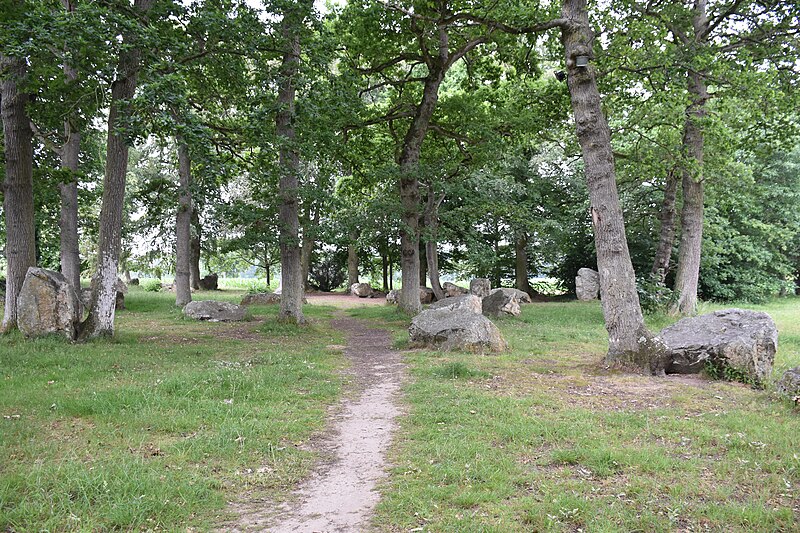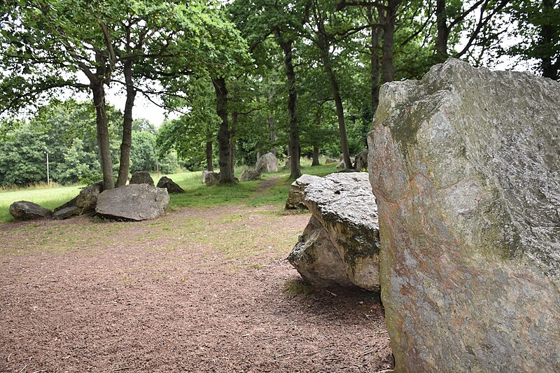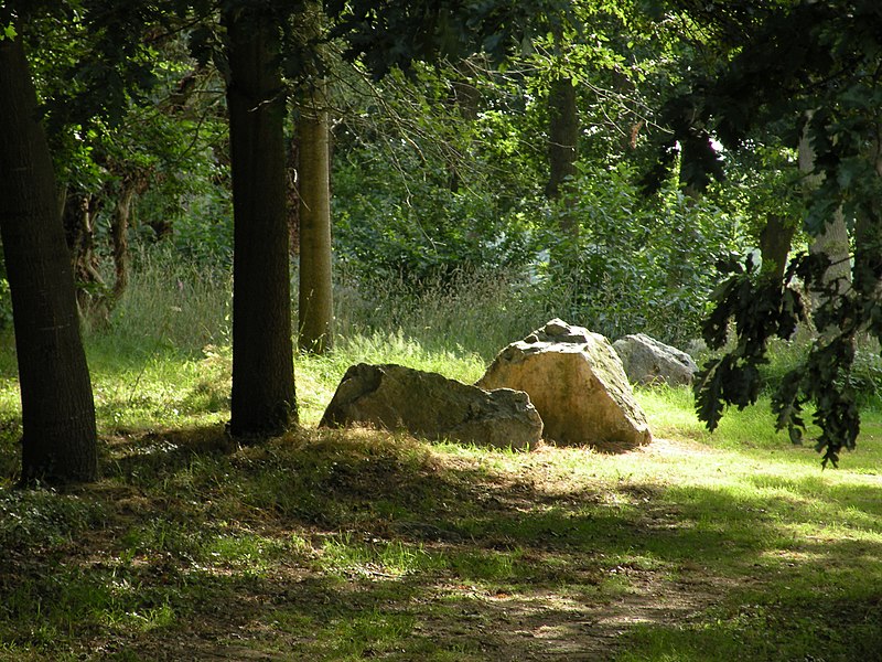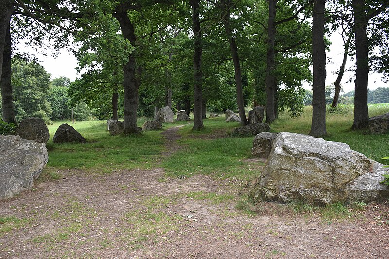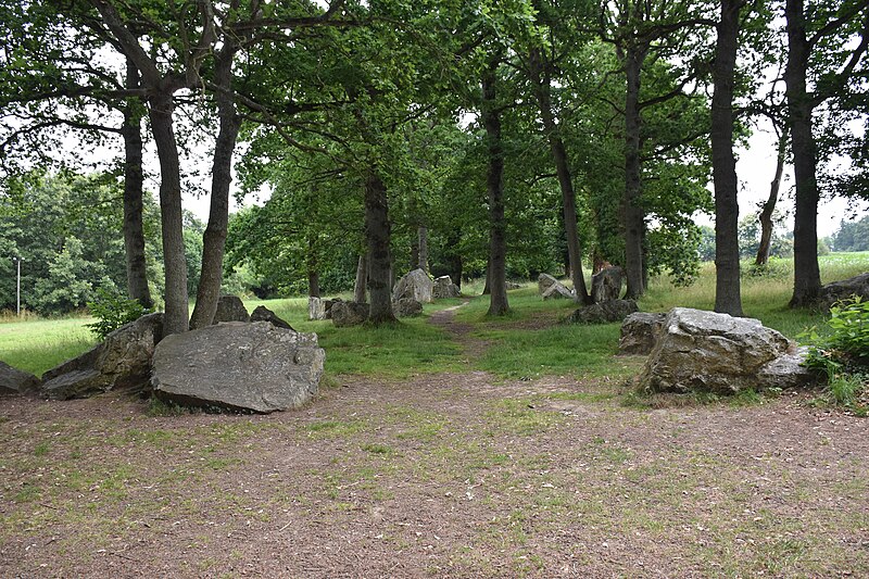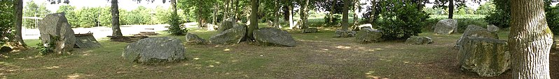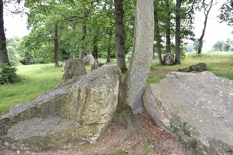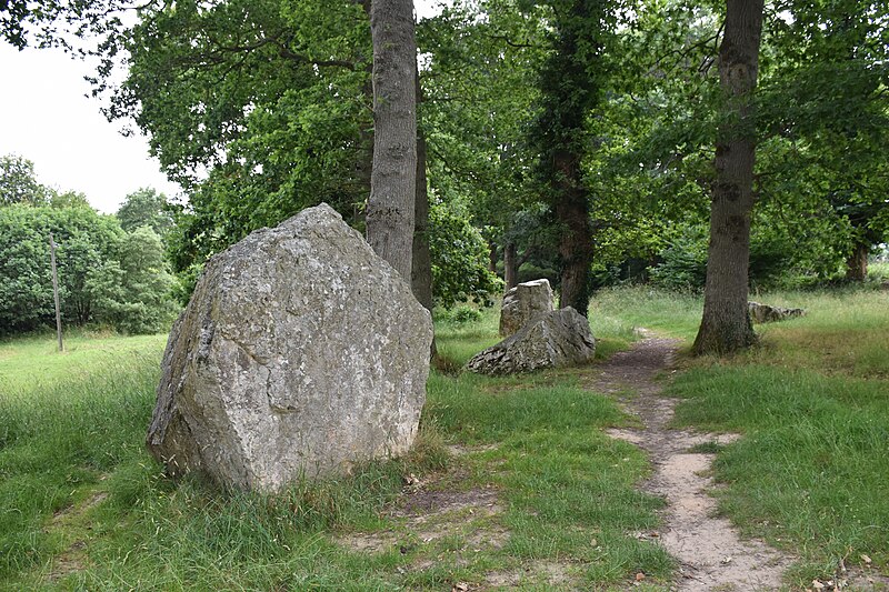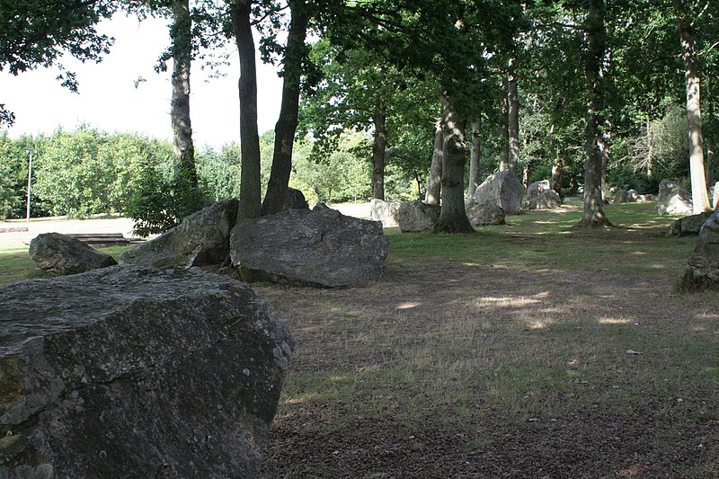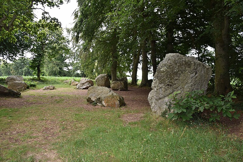 L'alignement du Champ des Roches, appelé aussi Cimetière des Druides, est un ensemble mégalithique situé sur la commune de Pleslin-Trigavou, dans les Côtes-d'Armor. Il est classé au titre des monuments historiques depuis 1889. Il se compose de 65 menhirs de quartz filonien blanc, dont 55 sont renversés, disposés en cinq rangs orientés ouest-est, avec quinze à dix-huit blocs par rang. Le plus grand menhir, appelé la Roche Tual, mesure 3,50 m de haut, 1,50 m de large et 2,50 m d'épaisseur. Quatre autres blocs de quartzite, situés à environ 100 m à l'ouest et alignés de la même façon, pourraient en faire partie, ce qui porterait la longueur maximale de l'ensemble à 200 m. Selon une légende, les pierres auraient été abandonnées par des fées qui construisaient le mont Saint-Michel. Une tradition ancienne, encore pratiquée vers 1850, faisait célébrer les roches à la Saint-Jean et à la Saint-Pierre par des banquets et des feux de joie, interprétés comme une survivance de rites dits druidiques. Sur le site, une collection de chênes, dépendant du Jardin botanique éclaté du pays de Dinan, a été plantée ; elle comprend des chênes indigènes tels que le chêne rouvre et le chêne pédonculé, des chênes à feuillage persistant comme le chêne vert et le chêne‑liège, ainsi qu'un chêne blanc. Pour approfondir, on peut consulter l'ouvrage de Loïc Langouët, Les mégalithes de l'arrondissement de Dinan, Institut Culturel de Bretagne, 2004, p. 35-36.