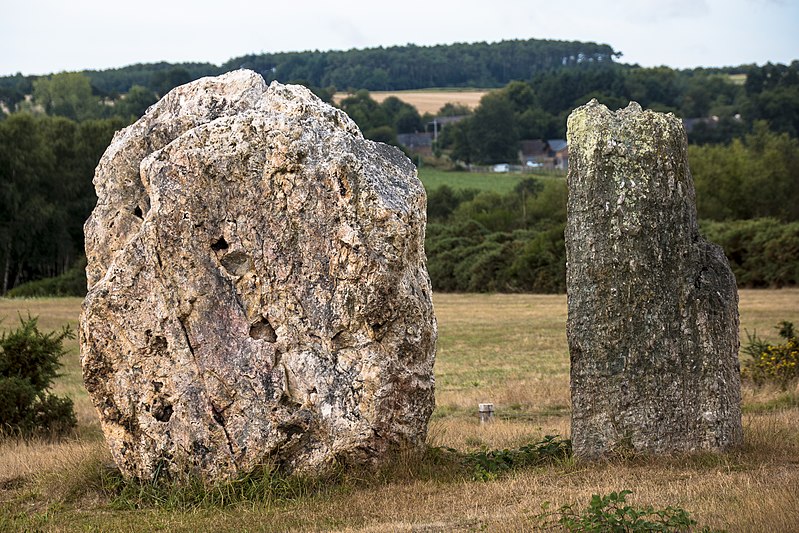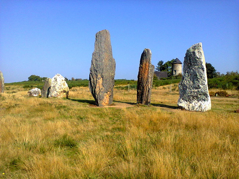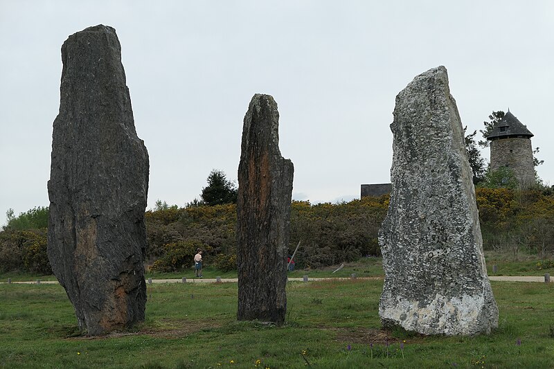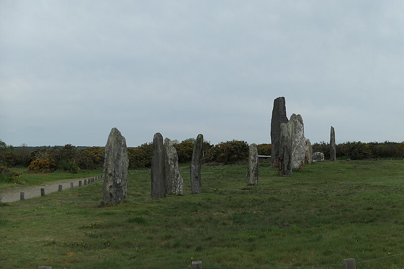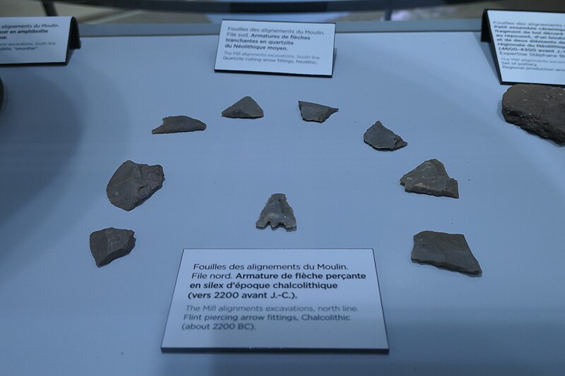 Le matériel issu des fouilles relève de deux grandes périodes, le Néolithique et l'Âge du cuivre/Âge du bronze. Le mobilier lithique comprend six armatures de flèches tranchantes en silex dont le façonnage sur place est attesté par des déchets de taille, bien que la matière première ne soit pas d'origine locale, ainsi que cinq autres armatures isolées en silex différent et quatre microlithes liés à une occupation mésolithique. Deux haches polies, l'une en dolérite de type A et l'autre en fibrolithe, ont été recueillies à proximité de l'alignement B. La céramique néolithique est peu abondante et se concentre entre les menhirs n°2 et 3 de l'alignement A et devant la bordure nord de la plate‑forme de l'alignement B ; il s'agit de poteries à pâte brunâtre pour la plupart lissées, parmi lesquelles un grand bol décoré de pastilles et poinçons a été reconstitué. Quatre vases campaniformes ont été découverts sur la plate‑forme de l'alignement B, et quelques fragments d'un petit pichet à anse à pâte noire avec décor en « arrêtes de poisson » sont attribués au Bronze armoricain. Dans l'alignement B, une urne funéraire de 0,55 m de haut, décorée de quatre anses en fer à cheval, a été retrouvée enterrée ; les charbons qu'elle contenait ont été datés entre 2780 av. J.-C. et 2180 av. J.-C.