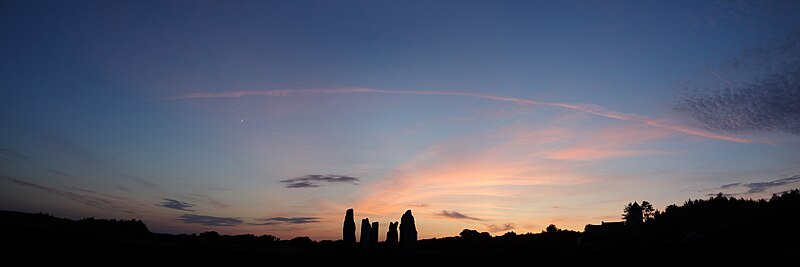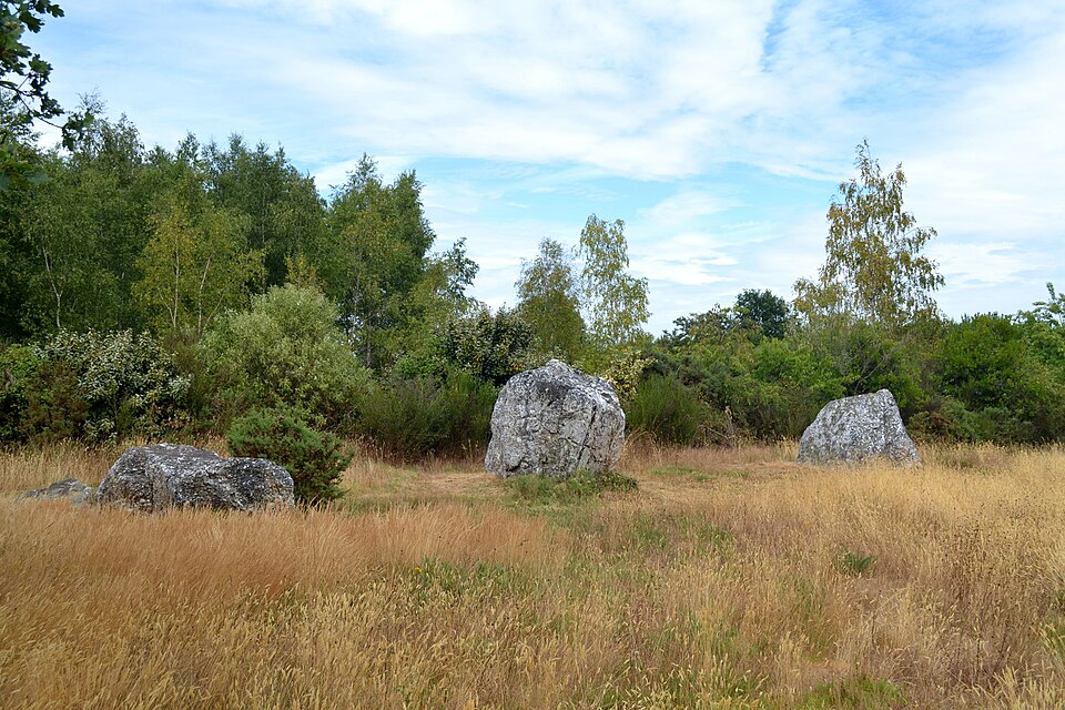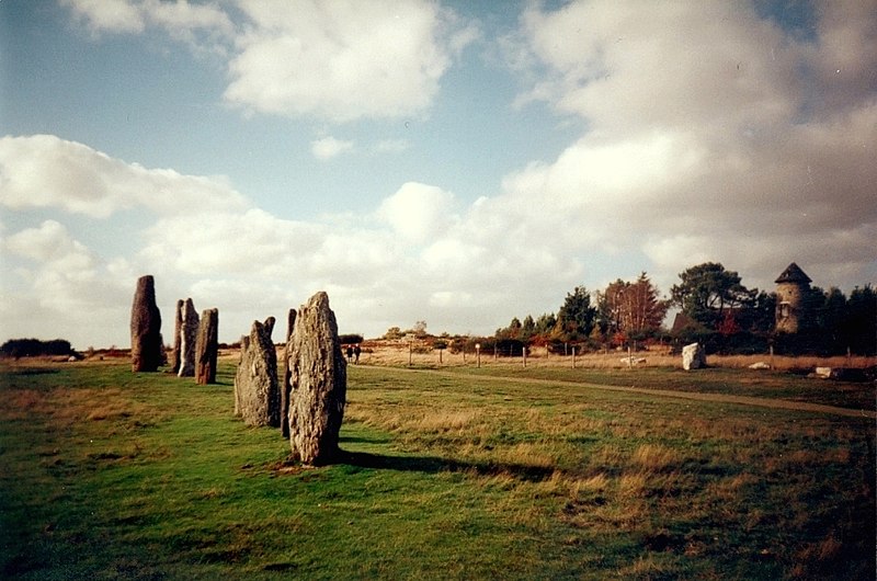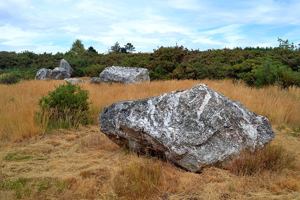 L'alignement C s'étire sur 120 m (azimut 105°) et se compose de six blocs massifs en quartz blanc et schiste. Les fouilles ont mis au jour les fosses d'implantation et des blocs de calage sommaires, et ont révélé l'absence d'un menhir repérée par la fosse de calage n°0. Près du bloc n°5, un petit monument funéraire comprenant deux tombes datées de l'Âge du bronze a été mis au jour ; la fosse de calage du menhir a peut‑être été détruite lors de sa construction. La plus grande tombe est un caisson rectangulaire de 2,10 m sur 1,30 m : sa paroi nord‑ouest est la face sud‑est du menhir, l'opposée est délimitée par un bloc de schiste noduleux de 1,90 m, le côté nord‑est par une dalle de schiste de 1,30 m, et une petite dallette à deux cupules pourrait fermer le côté sud‑ouest. La seconde tombe, adossée au côté sud‑ouest du menhir, constitue un petit coffre délimité par trois dalles de schiste de 1,50 m, 1,20 m et 0,90 m ; son côté sud‑est a disparu et le mode de couverture des deux tombes reste inconnu. Aucun mobilier archéologique n'a été recueilli dans ces tombes.
