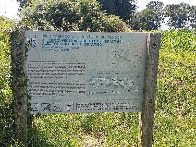 L'allée couverte de Kerantiec est un monument mégalithique du Néolithique situé à Riec-sur-Bélon, dans le Finistère (Bretagne). Elle a été signalée pour la première fois en juin 1947 par Pierre‑Roland Giot et J. Cogné et classée au titre des monuments historiques par arrêté du 16 décembre 1953. Le monument présente la particularité d'être arc-bouté, type peu courant dont on relève quelques exemples dans le sud du Finistère (Lesconil, Castel‑Ruffel) et dans le Morbihan. Orientée légèrement est‑ouest, l'allée mesure 9,50 m de longueur et sa chambre interne ne dépasse pas 1 m de largeur. Le parti architectural consiste à faire porter une paroi de la sépulture par l'autre, ce qui permet d'économiser des dalles de couverture mais réduit le volume de la chambre funéraire. La rangée sud comprend huit piliers fortement inclinés qui s'appuient sur la rangée nord, composée de piliers presque verticaux dont deux atteignent ou dépassent 2 m de hauteur ; plusieurs autres piliers sont basculés à l'horizontale. La dalle de chevet, assez petite, est restée en position verticale et l'entrée se faisait par l'est. Les dalles employées sont presque toutes en granite de Moëllan, parfois migmatisé, à l'exception d'un pilier en gneiss œillé ; ces matériaux sont d'origine locale.