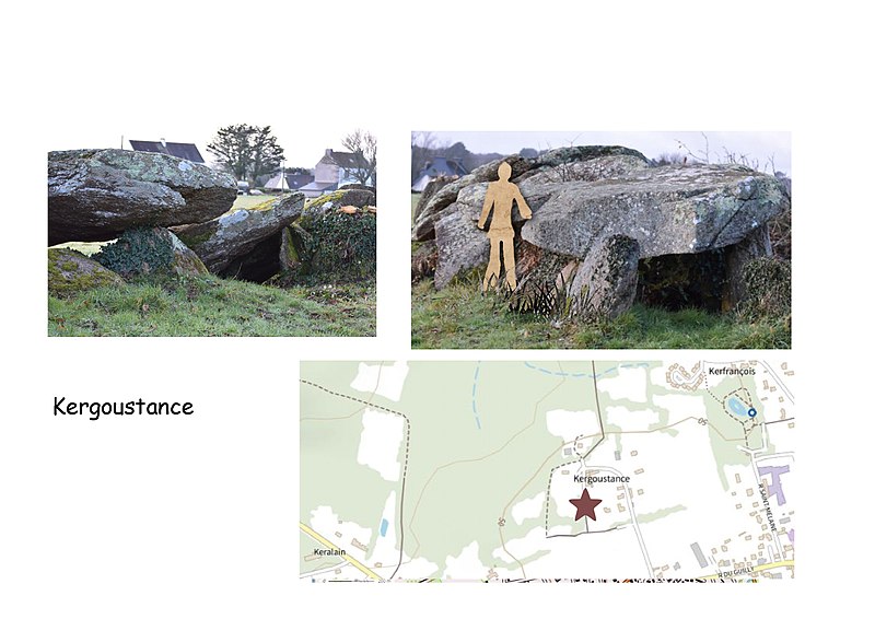 L'allée couverte de Kergoustance, située à Moëlan-sur-Mer dans le Finistère, est un bel exemple de sépulture mégalithique tardive. Elle s'étend sur environ 17,8 m de longueur, atteint 3,4 m de largeur maximale et ne dépasse pas 1,40 m de hauteur. Le monument est orienté nord-est/sud-ouest et délimité par seize orthostates, dont deux sont manquants, surmontés de sept tables de couverture. Toutes les dalles sont en granite rose de Moëlan et la plus épaisse des tables mesure 0,70 m. La chambre funéraire est scindée en deux parties : la partie orientale présente une structure classique avec deux rangées de dalles dressées formant piliers et supportant des dalles-linteaux, tandis que la partie occidentale adopte une structure arc-boutée, variante fréquente en Bretagne méridionale. Au chevet se trouve une petite pièce indépendante de la chambre principale, caractéristique des architectures armoricaines. L'extrémité sud-ouest est fermée par une dalle verticale et prolongée par une cellule terminale triangulaire délimitée par deux piliers. Les piliers du côté sud-est étant plus courts, les tables penchent vers ce côté. L'ensemble a sans doute été partiellement détérioré par la croissance d'arbres ayant poussé à l'intérieur. Les fouilles du XIXe siècle menées par Paul du Châtellier n'ont livré qu'une urne cinéraire et des monnaies en bronze d'époque romaine. Le monument a été signalé pour la première fois par René-François Le Men au XIXe siècle, déjà endommagé, et a fait l'objet d'une fouille en 1882; il est inscrit au titre des monuments historiques par arrêté du 20 février 1996. Selon la tradition locale, des korrigans peuplaient autrefois le site et entraînaient les personnes qui s'en approchaient à danser toute la nuit autour de l'édifice. Jusqu'au début du XXe siècle, un alignement mégalithique composé de pierres de petite dimension se trouvait à environ 25 m, sur quatre ou cinq rangs et d'une longueur d'environ 42 m, formant un angle avec l'allée.