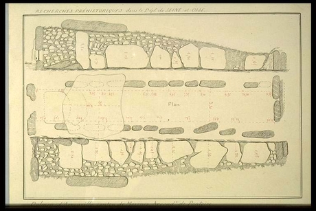 L'allée se situe à 90 m d'altitude, sur le coteau bordant la rive est du Sausseron, à environ 350 m de la rivière, et s'aligne selon un axe est-sud-est / ouest-nord-ouest, l'entrée étant orientée vers l'ouest-nord-ouest. Creusée dans le banc calcaire du talus sur les deux tiers de sa longueur à la manière d'un hypogée, elle mesure 12 m de long pour 1,75 à 2 m de largeur ; sa hauteur atteint 1,80 m côté entrée et pouvait s'élever jusqu'à 2,50 m au chevet, dont le plafond naturel a été détérioré par les carriers. Les parois latérales sont constituées d'une dizaine d'orthostates en calcaire, hauts de 0,65 m à 1,80 m, surmontés de couches de pierres sèches pour compenser les différences de niveau avec le plafond. Le dernier tiers de l'allée est recouvert d'une table de couverture toujours en place, longue de 2,90 m, large de 3 m et épaisse de 0,55 m ; au-dessus de l'entrée se trouvait une couverture de 1,40 m de long aujourd'hui disparue. Le chevet est formé de deux orthostates juxtaposés appuyés contre la roche et le sol était dallé de plaquettes de calcaire. L'entrée était fermée par une dalle dressée en travers de l'allée, plane côté intérieur et présentant plusieurs cavités et cupules sur sa face extérieure ; cette dalle est percée d'un "trou d'homme" rectangulaire aux angles arrondis, de 0,56 m de haut sur 0,58 m de large côté intérieur, et son bouchon, retrouvé en 1884, a depuis disparu. Un renflement de la dalle comportait un logement destiné à recevoir l'extrémité d'un bâton servant à bloquer le bouchon, système de fermeture caractéristique des dolmens de la culture Seine-Oise-Marne. L'antichambre a été détruite en 1901 lors de travaux d'élargissement de la route voisine.