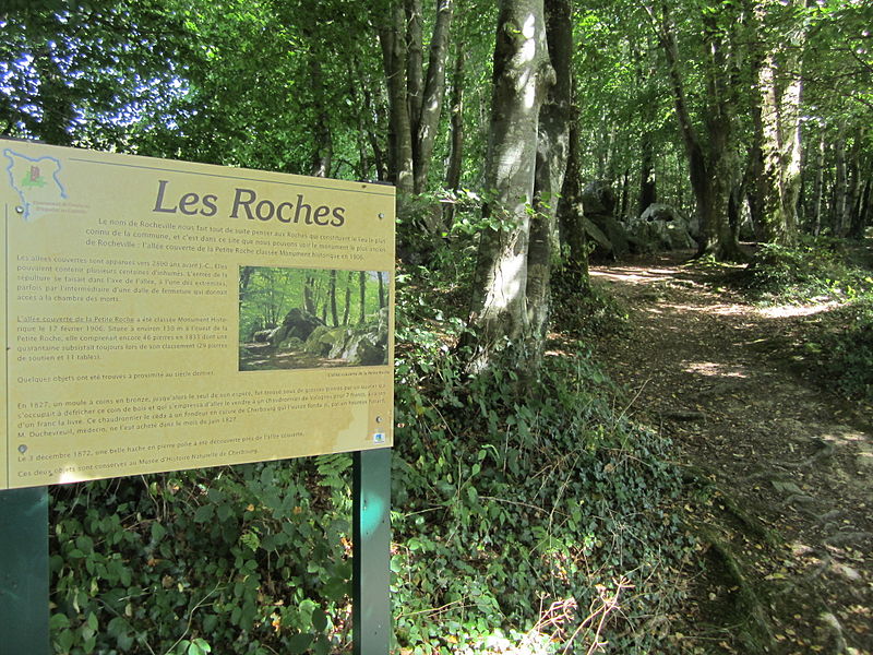 L'allée couverte de la Petite Roche est un site mégalithique situé sur la commune de Rocheville, dans le département de la Manche, en Normandie. Elle se dresse dans le bois de la Grosse Roche et constitue la seule allée conservée d'un groupe qui en comptait trois. L'édifice mesure environ 19 m de long et sa largeur varie de 1 à 1,20 m ; il est orienté est-ouest. Il est délimité par quatorze orthostates sur le côté nord et quinze sur le côté sud. Sept tables de couverture subsistent encore. Les roches utilisées proviendraient vraisemblablement d'un surplomb rocheux attenant. L'allée couverte de la Petite Roche est classée au titre des monuments historiques par arrêté du 12 février 1906. Pour approfondir, on peut consulter la page consacrée sur Wikimedia Commons, la notice Mérimée et le plan publié sur le site Mégalithes de la Manche. Parmi les ouvrages signalés figure l'inventaire de Léon Coutil, « Inventaire des monuments mégalithiques du département de la Manche », cité dans le compte rendu de la 35e session de l'Association française pour l'avancement des sciences, Lyon, vol. II, 1906, p. 743. Des ressources complémentaires figurent également sur les portails consacrés au mégalithisme, aux monuments historiques et au département de la Manche.