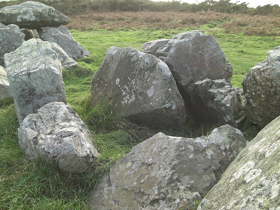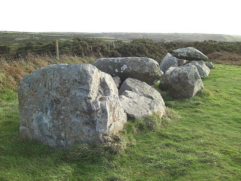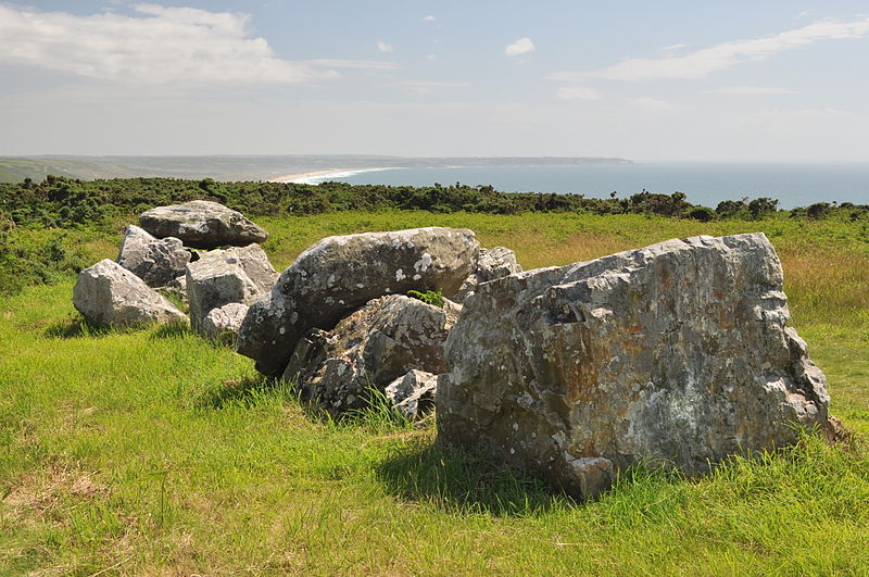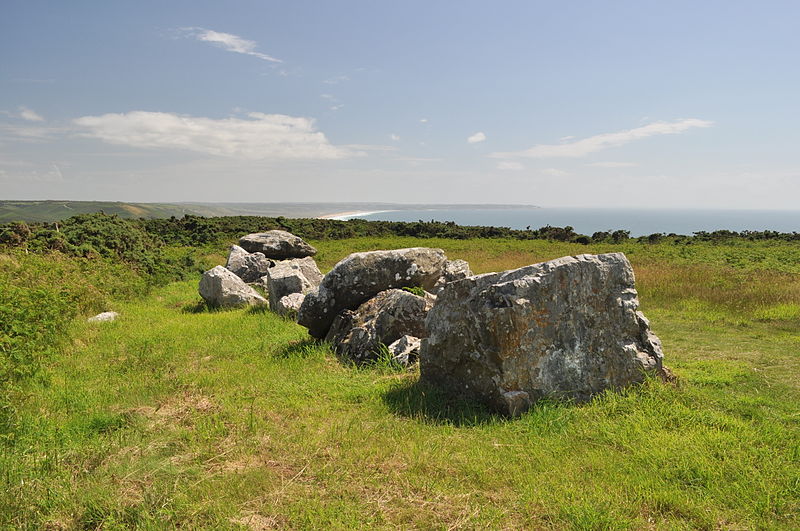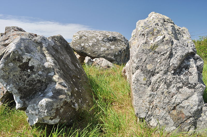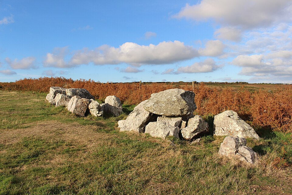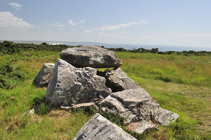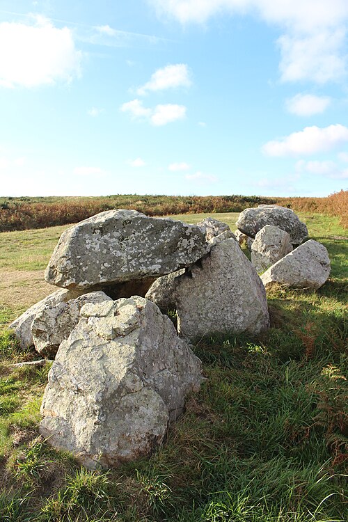 Les Pierres Pouquelées sont une allée couverte néolithique située sur le territoire de l'ancienne commune de Vauville, aujourd'hui intégrée à la commune nouvelle de La Hague, dans le département de la Manche en Normandie. Elle se dresse au sommet d'une colline à 134 m d'altitude. Orientée nord‑ouest / sud‑est, l'allée est très ruinée ; sa longueur actuelle est de 14,50 m, la largeur intérieure d'environ 1,25 m, la largeur extérieure de 2,40 m et la hauteur sous table de 1,20 m. L'entrée semble se faire latéralement au sud‑ouest. Les dalles sont en grès quartzeux, à l'exception de deux tables de couverture en granite qui proviennent probablement d'un gisement situé à environ 3 km, au niveau de la mer. Le site a été fouillé en 1755 par la Société royale académique de Cherbourg ; ces travaux ont entraîné l'enlèvement des tables de couverture et n'ont pas donné lieu à publication. Au début du XIXe siècle, des habitants ont récupéré des tables pour construire un pont ; le sous‑préfet de Valognes ordonna leur remise en place, mais les blocs furent simplement déposés sur le site et gisent aujourd'hui à quelques mètres de l'allée. Une bonne partie des orthostates a disparu en 1833. À la suite d'une demande de Léon Coutil, l'allée couverte a été classée au titre des monuments historiques par arrêté du 28 janvier 1907. Le monument est notamment documenté par l'inventaire de Léon Coutil et figure dans la base Mérimée.