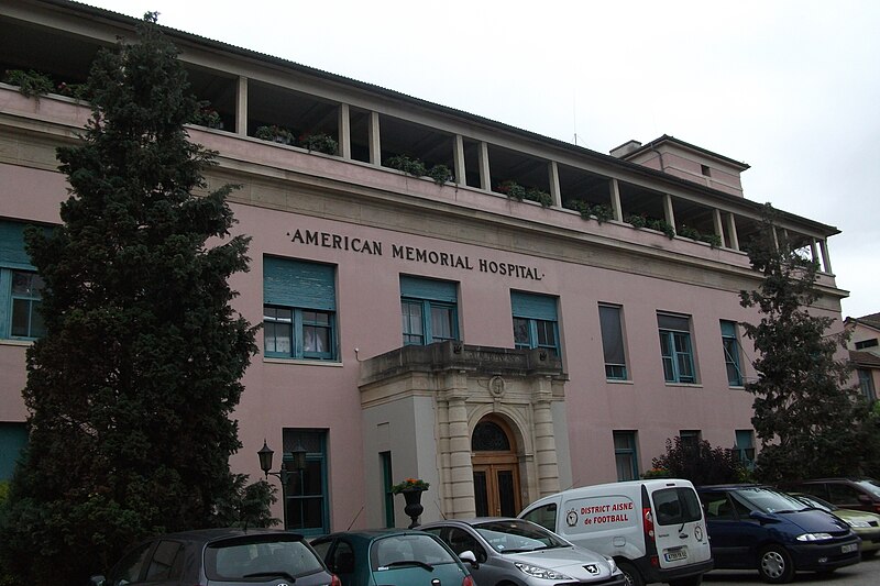 L’American Memorial Hospital, situé 47 rue Cognacq-Jay à Reims, est à l’origine un hôpital pour enfants financé par un comité américain présidé par Edith Bangs, né de la solidarité envers les Français et en hommage aux victimes américaines. Marie‑Louise Lefort, Américaine née de parents français et médecin au Bellevue Hospital de New York, vient en France en avril 1918 avec un groupe de cinq médecins et trente-deux infirmières entièrement équipés pour soigner les soldats gazés. Le 15 mars 1919, le docteur Lefort arrive à Reims et ouvre, le 15 avril, au 88 rue Chanzy un hôpital temporaire de l’American Memorial Hospital. À sa demande, des amis américains constituent un comité aux États-Unis pour financer la construction d’un hôpital d’enfants.