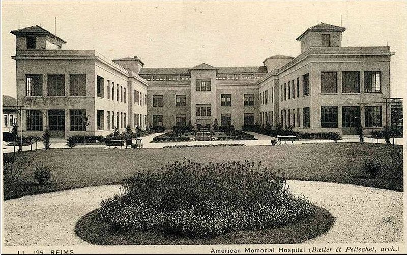Parce que certains morts américains reposent dans des fosses communes sans sépultures identifiées, il est décidé que l’hôpital sera aussi leur monument aux morts et portera le nom American Memorial Hospital de Reims. Construit par les architectes Charles Buttler et Auguste‑Raoul Pellechet, il est inauguré en 1925; le 30 avril de la même année le bâtiment est remis officiellement à la ville en présence de Miss Bangs, de l’ambassadeur Myron T. Herrick, du général Gouraud, du maire Charles Roche, du docteur Lefort et de son équipe. L’hôpital est agrandi en 1937 et fait aujourd’hui partie du CHU de Reims.