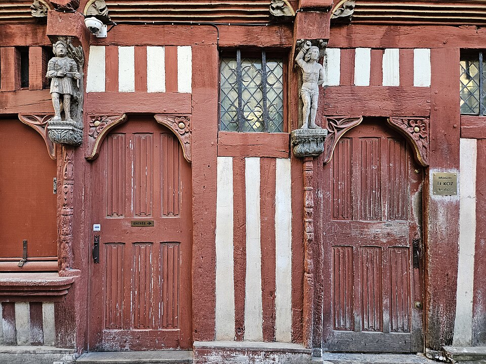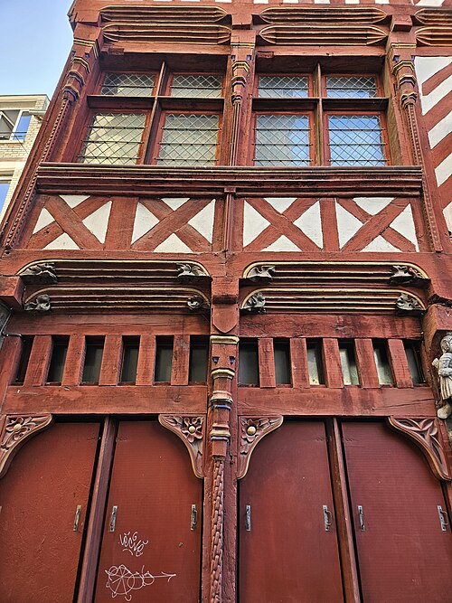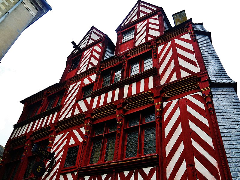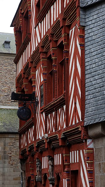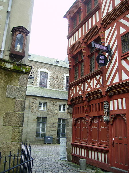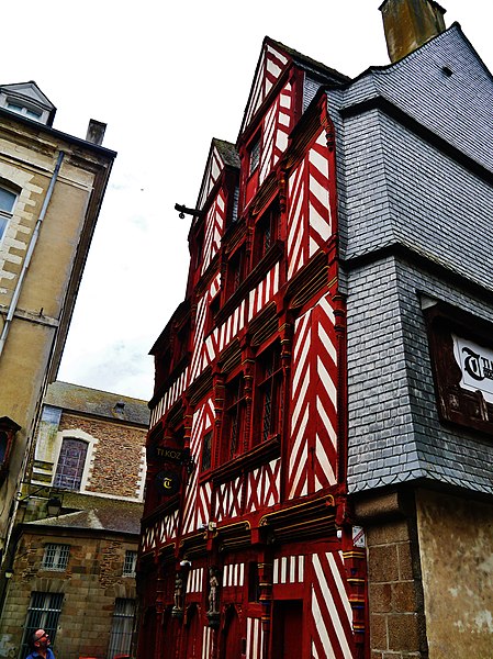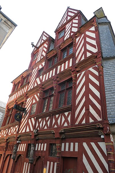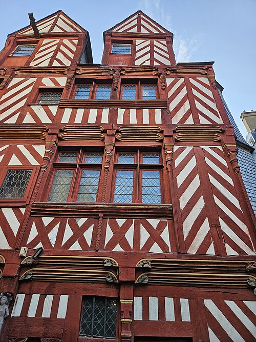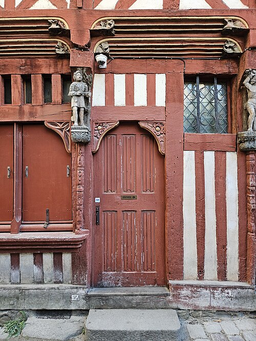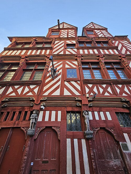 La maison du XVIe siècle, dite Maison du Guesclin, est un édifice à pans de bois situé au 3 rue Saint-Guillaume, dans le centre historique de Rennes, derrière la cathédrale. Elle comporte un rez-de-chaussée surmonté de trois étages en encorbellement, chaque niveau débordant sur la rue. Poteaux, consoles et sablières sont richement moulurés ou sculptés, et sous l'encorbellement du premier étage se trouvent deux statues en bois représentant saint Michel en archer et saint Sébastien. La façade porte la date 1505 et la maison a été conçue pour deux chanoines de la cathédrale, l'un lié à saint Michel, l'autre à saint Sébastien, d'où la présence des sculptures aux entrées. Il s'agit d'un double bâtiment, chaque partie ayant une entrée distincte. L'organisation en étages en encorbellement correspond à une pratique courante à l'époque moderne visant à augmenter la surface habitable sans accroître l'emprise au sol, celle-ci étant soumise à un impôt. La tradition populaire a longtemps appelé cet immeuble « maison du Guesclin » et l'a associé à Bertrand Du Guesclin. Adolphe Orain a toutefois relevé que la maison avait été construite deux siècles après la mort du connétable, ce qui met en doute cette attribution légendaire. L'édifice est classé au titre des monuments historiques depuis le 20 juillet 1923. Son nom breton, An Ti Kozh, signifie « la vieille maison » ; il provient du restaurant Ty-Coz qui occupait le lieu jusqu'à un incendie en septembre 1994. Une inscription en breton sur la façade, « TI-KOZ AMAÑ E KOMZER BREZONEG », se traduit par « Maison où on parle breton ».