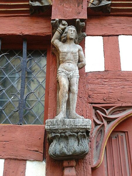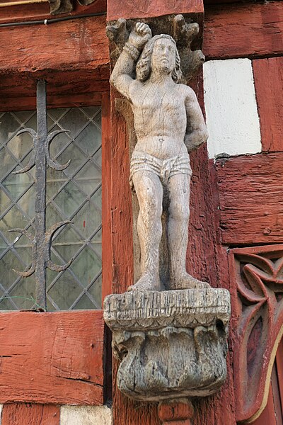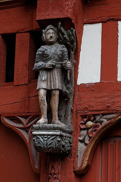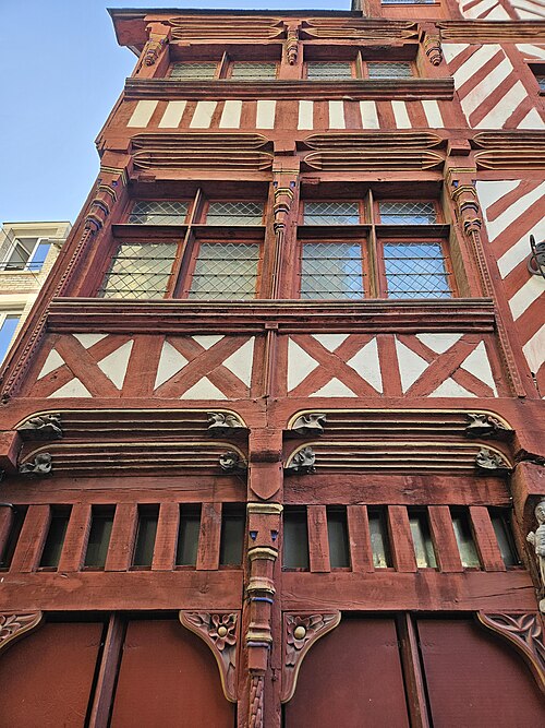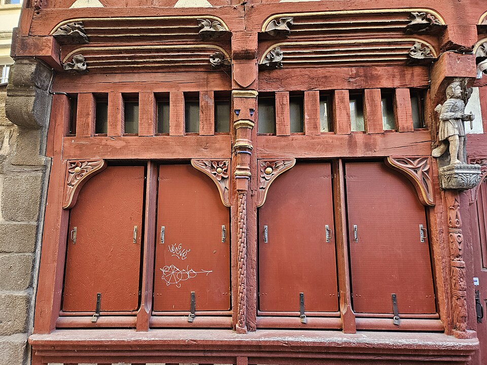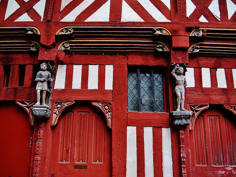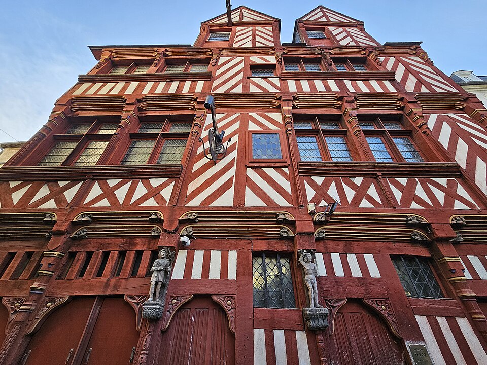 La maison du XVIe siècle, dite Maison du Guesclin, est un édifice à pans de bois situé au 3 rue Saint-Guillaume, dans le centre historique de Rennes, derrière la cathédrale. Elle comporte un rez-de-chaussée surmonté de trois étages en encorbellement, chaque niveau débordant sur la rue. Poteaux, consoles et sablières sont richement moulurés ou sculptés, et sous l'encorbellement du premier étage se trouvent deux statues en bois représentant saint Michel en archer et saint Sébastien. La façade porte la date 1505 et la maison a été conçue pour deux chanoines de la cathédrale, l'un lié à saint Michel, l'autre à saint Sébastien, d'où la présence des sculptures aux entrées. Il s'agit d'un double bâtiment, chaque partie ayant une entrée distincte. L'organisation en étages en encorbellement correspond à une pratique courante à l'époque moderne visant à augmenter la surface habitable sans accroître l'emprise au sol, celle-ci étant soumise à un impôt. La tradition populaire a longtemps appelé cet immeuble « maison du Guesclin » et l'a associé à Bertrand Du Guesclin. Adolphe Orain a toutefois relevé que la maison avait été construite deux siècles après la mort du connétable, ce qui met en doute cette attribution légendaire. L'édifice est classé au titre des monuments historiques depuis le 20 juillet 1923. Son nom breton, An Ti Kozh, signifie « la vieille maison » ; il provient du restaurant Ty-Coz qui occupait le lieu jusqu'à un incendie en septembre 1994. Une inscription en breton sur la façade, « TI-KOZ AMAÑ E KOMZER BREZONEG », se traduit par « Maison où on parle breton ».
