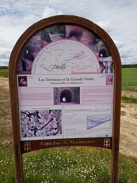 Les travaux d'adduction des eaux de l'Eure vers Versailles, ordonnés sous Louis XIV et partiellement réalisés, ont laissé sur le plateau entre Chartres et Maintenon d'imposants terrassements sur plusieurs kilomètres destinés à porter le canal. Sous ces levées subsistent des ouvrages d'art : tunnels pour le passage des routes, siphons et aqueducs permettant l'évacuation des eaux des vallées barrées. Les écluses et la digue de Boizard, conçues pour la captation, sont attribuées à Vauban. Le canal de l'Eure, aussi appelé canal Louis XIV ou canal de Maintenon, était un canal d'amenée d'eau pensé initialement navigable et resté inachevé ; Vauban en assura la conception pour alimenter le domaine royal de Versailles. L'eau, détournée à Pontgouin près de Chartres, devait être acheminée jusqu'à l'étang de la Tour, près de Rambouillet, afin d'alimenter les réservoirs du parc de Versailles, sur un tracé prévu d'environ 80 km à vol d'oiseau. Les travaux, commencés en 1685, furent interrompus trois ans plus tard par la guerre de la Ligue d'Augsbourg ; malgré les sommes engagées et les pertes humaines, le chantier ne reprit pas et le canal resta inachevé. Installé à Versailles, le roi multipliait les fontaines et jets d'eau, ce qui accrut fortement les besoins en eau d'un site éloigné des grands cours d'eau. La machine de Marly et les aqueducs reliant la Seine avaient été mis en place, mais l'ensemble souffrait de défauts et ne pompait qu'une partie des volumes nécessaires ; sur la base des travaux de La Hire, Louvois commanda alors à Vauban l'étude d'un canal depuis l'Eure. Vauban, qui avait déjà travaillé sur des aménagements hydrauliques pour Versailles, visita la région et rédigea en cinq mois un devis détaillé décrivant les ouvrages de maçonnerie et leurs modes d'exécution. Il s'entoura d'ingénieurs militaires — dont Isaac Robelin, Mesgriny et Parisot — et fit appel à des entrepreneurs de Flandre et d'Alsace avec lesquels il avait déjà travaillé ; il utilisa aussi des techniques issues des fortifications, comme le creusement de canaux d'approche pour acheminer les matériaux et un four à chaux alimenté au charbon de terre. Le camp militaire du chantier fut placé sous la direction du marquis d'Uxelles, les ouvriers étant en grande partie des soldats. Le projet prévoyait un canal à ciel ouvert de plus de 80 km avec une pente de 14 à 17 cm par kilomètre, captant l'Eure par un petit barrage à Pontgouin pour conduire l'eau jusqu'à l'étang de la Tour et Vieille-Église-en-Yvelines. La première section devait être une rigole de 40 km creusée à flanc de coteau ; franchir la vallée de l'Eure imposa des solutions techniques successives : des projets d'aqueducs monumentaux furent discutés, puis retenues des solutions mêlant remblais et siphons en tuyaux de fonte pour franchir d'abord la vallée des Lorris, puis celle de l'Eure sur un aqueduc plus bas que prévu initialement. Les travaux débutèrent en mai 1685 avec 1 800 hommes à Pontgouin et atteignirent un effectif maximal d'environ 30 000 personnes, dont près des deux tiers, soit 22 000, étaient des soldats, une main-d'œuvre moins coûteuse et plus mobilisable que la main civile. Le chantier connut de lourdes pertes humaines et des accidents nombreux : on estime à 10 000 le nombre total de morts liés aux travaux, dont 6 000 victimes d'une fièvre paludéenne en 1687. Au printemps suivant, la guerre entraîna l'arrêt des travaux ; à la fin du conflit, les finances royales étant épuisées et Louvois décédé, le chantier ne reprit pas malgré les neuf millions de livres déjà dépensés. Le captage des eaux s'opérait à Boizard par une digue retenant l'eau dans un lac artificiel long d'environ six kilomètres jusqu'à Belhomert. Le tracé devait traverser les actuels départements d'Eure-et-Loir et des Yvelines et desservir de nombreuses communes, parmi lesquelles Pontgouin, Landelles, Courville-sur-Eure, Saint-Arnoult-des-Bois, Fontaine-la-Guyon, Saint-Aubin-des-Bois, Dallonville et Senarmont (Bailleau-l'Évêque), Fresnay-le-Gilmert, Saint-Germain-la-Gâtine, Berchères-la-Maingot, Théléville (Bouglainval), Chartainvilliers, Maintenon, Hanches, Houdreville (Épernon), Haute-Maison, Cerqueuse (Orphin) et Craches (Prunay-en-Yvelines). De nombreux vestiges subsistent et permettent d'identifier le tracé en plusieurs points : à Pontgouin la digue et les écluses de Boizard sont classées au titre des monuments historiques ; à Saint-Arnoult-des-Bois on observe deux arches marquant le passage du canal, dont l'arche à Mulet franchissant le Coisnon ; à Fontaine-la-Guyon une partie du canal a été restaurée dans le parc du château qui abrite la mairie ; à Bailleau-l'Évêque une portion de canal en eau d'environ 250 mètres est conservée ; à Berchères-Saint-Germain subsistent le tunnel dit « L'Arche de la Vallée » long de 161 mètres et un entonnoir amont avec puits elliptique, inscrits aux monuments historiques ; à Chartainvilliers se voient deux tunnels nommés « La Petite Voûte » et « La Grande Voûte », également inscrits. Ces vestiges constituent les principaux témoignages matériels du projet inachevé du canal Louis XIV.