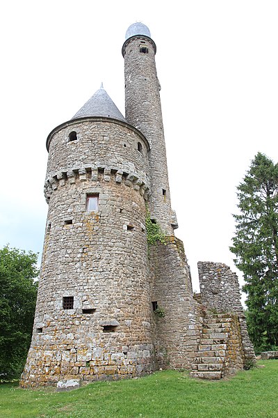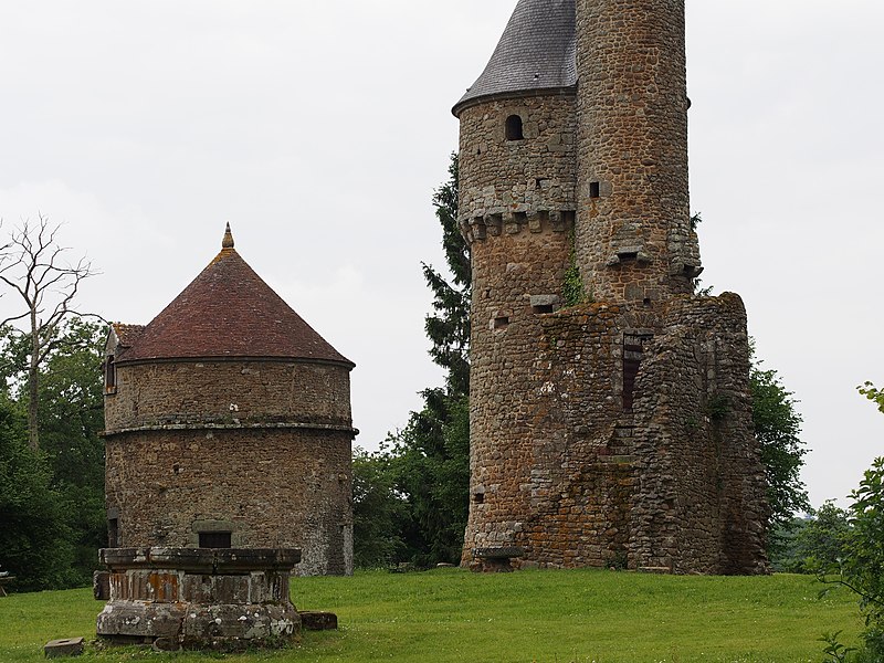 Il subsiste principalement une grosse tour d'angle fortifiée à mâchicoulis, appuyée sur des corbeaux et peut‑être plus ancienne que la construction principale, ainsi qu'une très haute tourelle cylindrique de guet dite « Le Phare », haute de 26,50 mètres et coiffée d'une toiture en cloche portée par une corniche à modillons. Cette tourelle abrite un escalier de pierre qui permet d'accéder au sommet et la porte est surmontée d'une petite bretèche. À proximité se voient les vestiges d'une autre tour transformée en colombier, différents tronçons de rempart, le puits profond de 33 mètres, une ancienne chapelle qui a été reconvertie en habitation et dont témoigne la présence d'une cheminée, ainsi que l'étang et le verger.