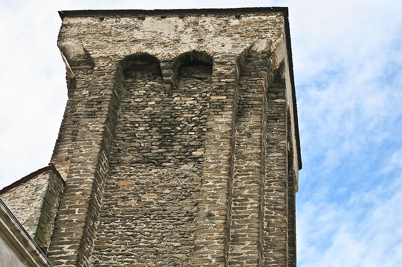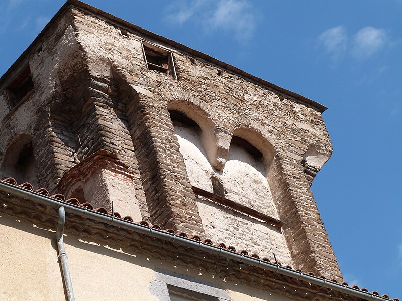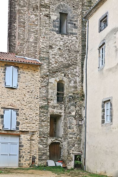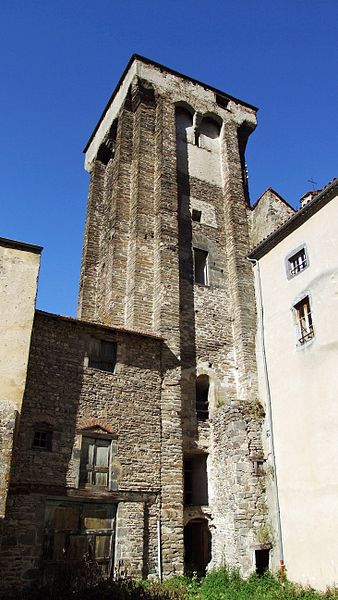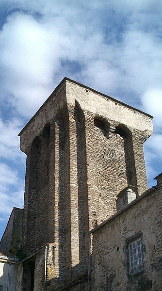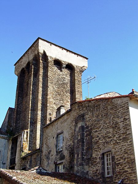 La tour, partie intégrante de l'ancien château, est un donjon de plan rectangulaire haut de 26 mètres. Huit contreforts renforcent ses angles et des mâchicoulis, soutenus entre ces contreforts, reposent sur des arcs jumeaux portés par des consoles médianes formées d'assises en encorbellement. L'ouvrage devait comprendre trois étages, dont deux voûtés en berceau, la première voûte en plein cintre et la seconde en arc brisé. Les planchers qui recouvraient ces voûtes communiquent encore par un escalier aménagé dans l'épaisseur des murs.