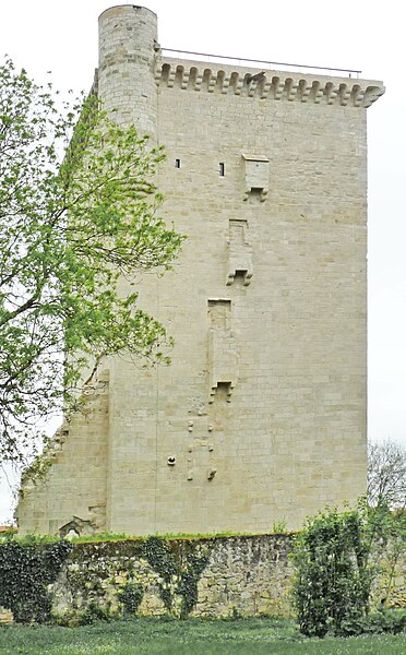 Le donjon carré, aujourd'hui appelé Tour de l'honneur, est le principal vestige de l'ancien château féodal de Lesparre-Médoc, classé au titre des monuments historiques depuis le 10 septembre 1913. Un château existait déjà au XIIe siècle, mentionné comme « castello quid dicitur Sparra », et l'ensemble est cité en 1274. Reconstruit après 1303, il a été développé aux XIIIe et XIVe siècles ; le donjon remonte au premier quart du XIVe siècle et sa construction est datée de 1320. La forteresse entra dans l'orbite anglo-gasconne par le mariage d'Aliénor d'Aquitaine avec Henri Plantagenêt, puis resta sous influence anglaise pendant près de trois siècles, jusqu'en 1453 ; au XVe siècle elle fut vendue au roi d'Angleterre et devint un centre de la domination anglaise. Au Moyen Âge, les sires de Lesparre commandèrent une grande partie du Médoc et le château accueillit des personnalités de la langue d'oc, tels les troubadours Aimeric de Belenoi et Pey de Corbian. Certains seigneurs se firent une réputation, notamment Florimont de Lesparre, parti en Terre sainte et célèbre pour avoir provoqué en duel Pierre de Lusignan, roi de Chypre. La forteresse passa ensuite aux familles de Madaillan, d'Albret, de Foix, de Clèves, de Matignon, d'Épernon et de Gramont. Vendue comme bien national pendant la Révolution, elle fut presque entièrement démantelée peu après et rachetée par la commune en 1840. Un relevé de 1846 décrit une enceinte en hexagone irrégulier, protégée par un ruisseau sur deux côtés et entourée de marais sur les autres faces. La porte, aujourd'hui disparue, était flanquée de deux tours rondes ; le donjon défendait l'avancée la plus exposée du polygone. Le donjon, haut de près de trente mètres, comporte cinq niveaux : un rez-de-chaussée couvert de croisées d'ogives et quatre salles voûtées dont les planchers ont disparu. La plate-forme sommitale conserve une ligne de mâchicoulis et une tourelle d'angle en encorbellement. La voûte supérieure qui porte la terrasse présente une disposition particulière : elle repose sur une double croisée d'arcs, les uns suivant les diagonales, les autres normaux aux faces. Des marques de tâcherons sont visibles sur la tour. La Tour de l'honneur abrite aujourd'hui un musée consacré à l'histoire locale, à l'artisanat et aux traditions médocaines.