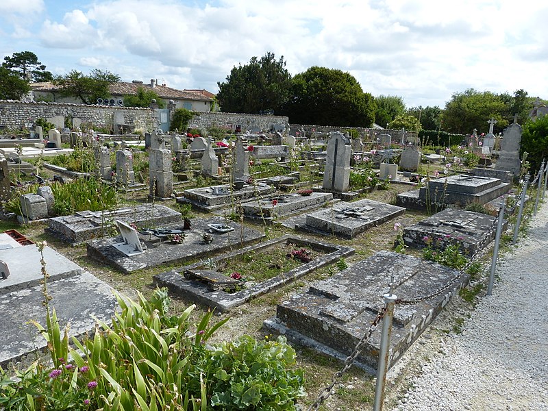 Le cimetière marin borde l'église Sainte-Radegonde sur son flanc nord et succède à l'ancien « Clouzit », le cimetière clos traditionnel des églises saintongeaises. Il conserve des tombes datant du XVIIIe siècle et de nombreux cénotaphes, témoins du renouveau de l'art funéraire à cette époque. Jusqu'au début des années 1950, le terrain était divisé en deux enclos distincts, l'un pour les catholiques, l'autre pour les protestants, reliés par une ancienne voie appelée « Rue des canons » qui débouchait sur le parvis de l'église. Parmi les monuments, un cénotaphe a été déplacé dans la cour du musée en 1996; son épitaphe latine rappelle la mémoire de l'épouse d'un capitaine décédée en 1845. Chaque été, de nombreuses roses trémières viennent animer le site. Classé au titre des monuments historiques le 21 février 1934, le cimetière conserve aussi des croix du front de mer et d'autres tombes anciennes qui témoignent de son histoire. Intimement lié à l'église et au village, il illustre la continuité des pratiques funéraires et l'importance du patrimoine local.