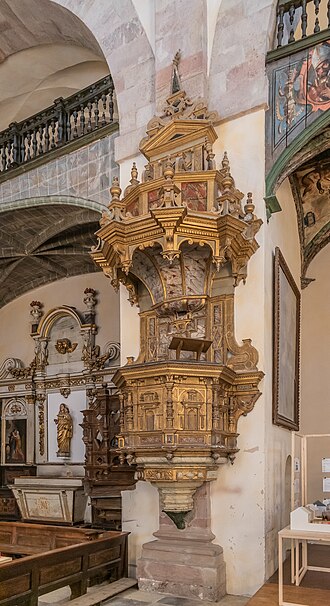 En raison de l'importance accordée à la prédication, la chaire est installée sur le premier pilier près de l'assemblée ; des tribunes aménagées au‑dessus des deux premières travées permettent d'accueillir les grandes affluences et l'une d'elles supporte un orgue. À l'extérieur, le vocabulaire reprend le baroque italien : la façade ouest associe deux ordres superposés et, au second niveau, une grande ouverture en demi‑cercle encadrée par deux clochers carrés qui abritent les escaliers menant aux tribunes et à la charpente. Deux niches flanquent le porche et abritent les statues de saint Ignace de Loyola et de saint François‑Xavier ; la porte, à panneaux et motifs sculptés, est entourée d'une large gorge à bossages et d'archivoltes portées par des pilastres. L'intérieur reste sobre, avec arcs doubleaux, pilastres corinthiens, caissons peints et grandes fenêtres au deuxième niveau éclairant largement la nef.