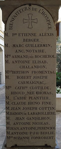 L'ensemble des bâtiments de l'ancien couvent, y compris les parties reconstruites au XIXe siècle : le cloître et les bâtiments l'entourant (l'église et ses deux chapelles latérales, la cour d'entrée avec le grand portail sur rue, l'aile triangulaire au nord avec son pavillon, l'aile orientale avec son pavillon, l'aile sud) , le bâtiment qui prolonge au sud l'aile orientale du cloître avec son pavillon central à l'est et les deux terrasses de l'ancien jardin qui le jouxtent à l'ouest (cad. AL 22) : inscription par arrêté du 21 janvier 2005 - En totalité, la cavité dite "caveau de Saint-Pothin", avec son autel, ses grilles et les 19 lampes de sanctuaire qui subsistent fixées aux grilles et aux murs, la chapelle souterraine attenante avec son autel, ses lampes en applique et son portique d'entrée situé au niveau du cloître, le sol du même cloître dans sa totalité, l'ensemble faisant partie de l'ancien hôpital de l'Antiquaille (cad. AL 22) : classement par arrêté du 6 juillet 2005