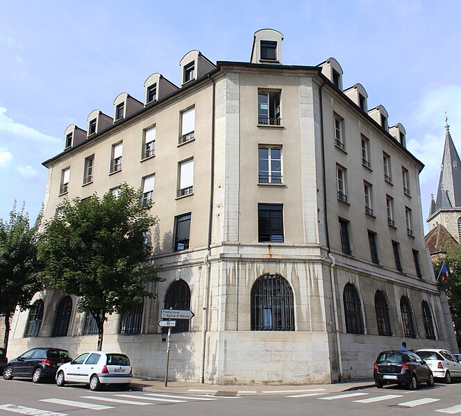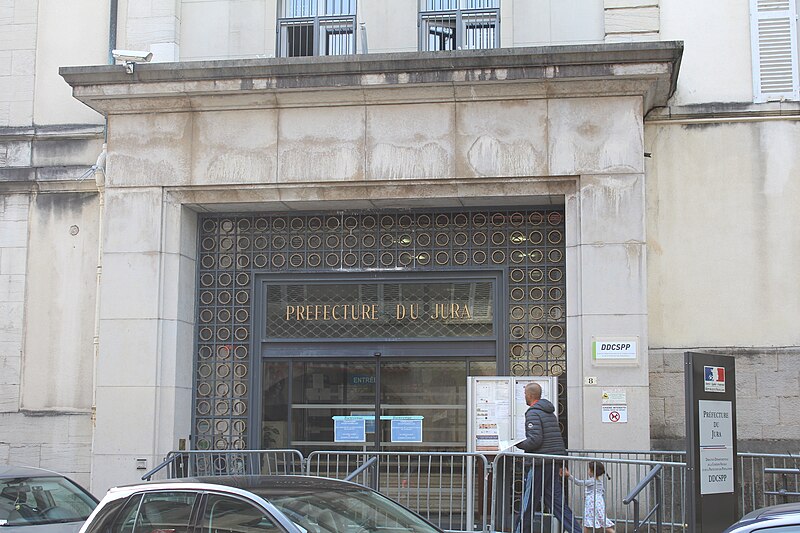 L'ancien couvent des Bénédictins, aujourd'hui hôtel de la préfecture du Jura, est situé à Lons-le-Saunier. Le noyau primitif comprend une église construite à la fin du XIe siècle sur une crypte datée de la première moitié du XIe siècle, avec des remplois qui pourraient remonter au VIIIe siècle. Le prieuré se constitue au XIIe siècle, puis le couvent et son cloître sont partiellement ruinés par des incendies signalés en 1636 et 1637. De 1711 à 1715, Dom Vincent Duchesne entreprend la reconstruction totale des bâtiments conventuels. Après la Révolution, le site est transformé en hôtel de préfecture et les constructions autour du cloître sont complétées ; Gabiot procède à des aménagements en 1809, entraînant notamment la démolition de deux chapelles et de deux travées de la nef. L’entrée principale a été aménagée au nord-est en 1809, tandis qu’un portail d’honneur à grille en fer forgé se situe au nord-ouest. À l’est, les locaux s’organisent autour d’une seconde cour créée en 1849, et un bâtiment destiné aux archives est élevé en 1895 ; des bâtiments administratifs supplémentaires sont adossés au cours du XIXe et du XXe siècle. Parmi les interventions successives figurent la reconstruction du clocher en 1604, son arasement en 1795, puis sa reconstruction par Achille Paillot en 1880, la construction d’un escalier extérieur et du portail nord de l’église par Pourchot en 1845, d’importants travaux de restauration et l’édification de deux chapelles au sud en 1852, l’ouverture du portail occidental en 1900 et la restauration de la crypte en 1935. Un réaménagement avec une entrée publique a été réalisé dans les années 1970. Dans l’aile sud, un grand escalier en pierre muni d’une rampe en fer forgé dessert les appartements d’honneur de la préfecture, qui conservent des décors. Dans une cave des anciens bâtiments conventuels se trouve un bassin maçonné dit « fontaine de Rome », dont l’origine pourrait remonter au haut Moyen Âge. L’édifice est partiellement inscrit au titre des monuments historiques depuis le 12 mai 1999.