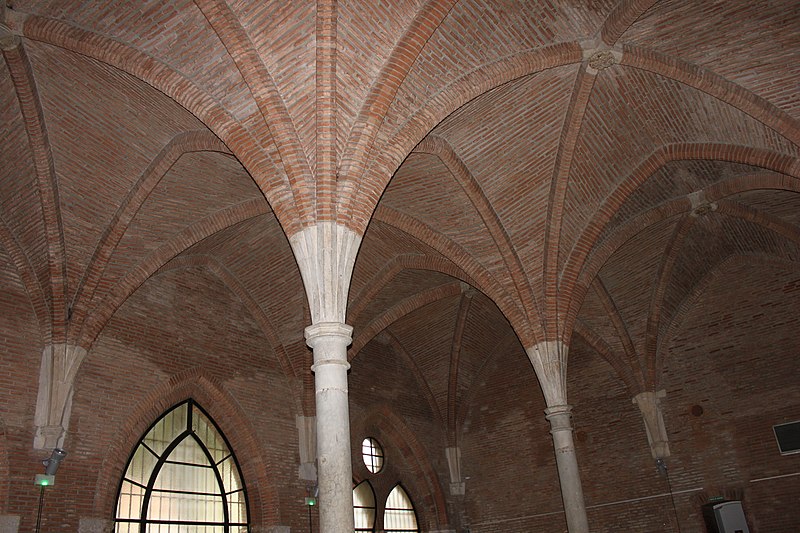 Le couvent des Cordeliers de Toulouse est un ancien couvent franciscain fondé en 1222. Une église était en construction dès 1235 et, entre 1290 et 1320, furent édifiées la grande sacristie et la salle capitulaire. La grande église conventuelle, de style gothique méridional et construite au début du XIVe siècle, s’organisait autour d’un cloître desservant la chapelle Notre‑Dame de Rieux, la sacristie, la salle capitulaire, la bibliothèque, le réfectoire et les cellules des moines. Le couvent devint la principale maison de la province franciscaine d’Aquitaine et un centre intellectuel lié à l’université toulousaine. La chapelle Notre‑Dame de Rieux fut initiée par Jean Tissandier et achevée par le cardinal Pierre de Foix, destinée à servir de chapelle funéraire. Certaines parties du couvent furent remaniées après le XIVe siècle, vraisemblablement à la suite d’un incendie en 1463 ou du sac attribué aux Huguenots en 1513. Au cours des XVIe siècle des réparations et transformations ont encore été menées, et les bâtiments subirent des destructions lors des troubles religieux. À la Révolution, les biens conventuels furent nationalisés, les objets du culte et les reliques dispersés, et l’église transformée en magasin à fourrage ; la flèche du clocher fut abattue en 1794 et le cloître démoli à la fin du XVIIIe siècle. Les bâtiments passèrent ensuite à l’administration militaire et la nef servit de stockage de fourrage, jusqu’au grand incendie de 1871 qui détruisit la nef et entraîna, en 1873‑1874, la démolition de l’essentiel des ruines. Classée parmi les monuments historiques dès 1862, l’église a vu sa protection complétée en 1994 par le classement des vestiges restants. Aujourd’hui subsistent principalement l’église en partie ruinée, la grande sacristie, la salle capitulaire et l’étage supérieur où se trouvait l’ancien dortoir. La grande sacristie, attribuée à la période 1290‑1320, a conservé des voûtes en croisées d’ogives, des peintures murales et une élévation sur le cloître ; elle mesure environ 20 mètres sur 7 et présente des travées appuyées sur colonnettes à chapiteaux sculptés. La salle capitulaire, restaurée dans les années 1990, mesure 17 mètres sur 11 et conserve des voûtes et des ouvertures médiévales donnant sur le cloître. Le cloître, qui bordait la galerie nord de l’église, était orné de fresques et d’un jardin central, et ses galeries étaient soutenues par colonnes et ogives. La bibliothèque conventuelle, dont une partie des manuscrits et incunables a rejoint la bibliothèque municipale, était réservée aux frères et devait comporter des livres attachés aux pupitres. Des éléments sculptés et des œuvres provenant du couvent ont été dispersés entre musées et églises, notamment au musée des Augustins et au musée Paul‑Dupuy. Au XXe siècle des opérations de restauration et des réaménagements ont été menés : en 1994 des travaux de surélévation et de réaménagement ont respecté la conservation de la grande sacristie au rez‑de‑chaussée, et en 1999 la façade du bâtiment en fond de cour a été dégagée, révélant une grande arcade et une lancette dissimulées sous un enduit ; des ouvertures d’époque XVIIIe siècle ont également été conservées. Le site témoigne ainsi d’une longue histoire d’établissement, de transformations architecturales et de destructions, tout en conservant des vestiges majeurs de l’ancien couvent.