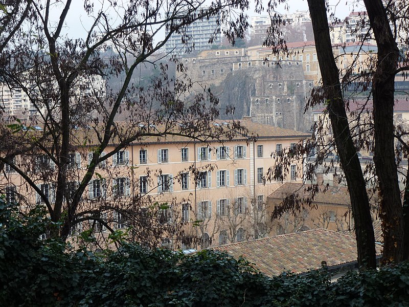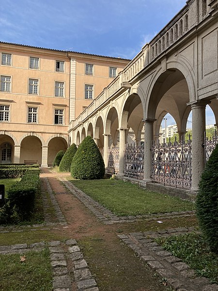 La première église des Cordeliers était une petite construction gothique accompagnée d'un cloître à deux ailes ; de nouvelles constructions et plusieurs chapelles sont ajoutées aux XVIe et XVIIe siècles, et des restaurations sont entreprises après des dommages causés par les coups de canon lors d'entrées royales ; l'église est finalement démolie en 1846. Les religieuses avaient édifié leur propre église, à trois chapelles au moins, avec un maître-autel et un autel de la Sainte‑Vierge en bois doré, un chœur pourvu de boiseries et de tableaux ; dans le clos ouest existaient encore trois chapelles, dont une subsistait en 1837.