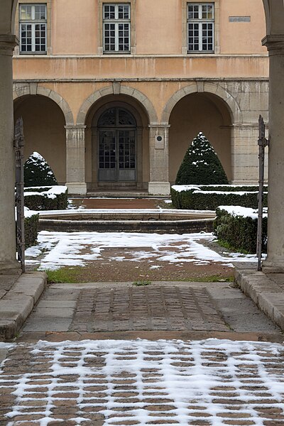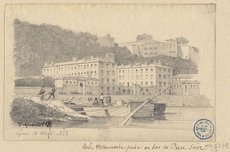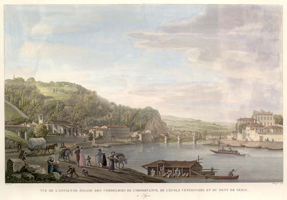 L'école nationale vétérinaire, fondée par Claude Bourgelat, est transférée au monastère des Deux-Amants par arrêté du 6 Floréal an III (25 avril 1795) et son directeur demande la cession des bâtiments des Cordeliers le 13 Messidor an X (2 juillet 1802). Les travaux d'installation et de restauration se succèdent sous la direction de plusieurs architectes, parmi lesquels Cochet, Flachéron, Chenavard, Chabrol et, plus tard, Perrin, puis Tony Garnier et Pierre Bourdeix pour des adaptations techniques et la construction de bâtiments de clinique, de physiologie, d'anatomie et de chimie. Le potager devient jardin botanique et médicinal au nord et un parc boisé en terrasses est aménagé à l'ouest ; une gravure de Gabillot illustre l'aspect de l'école en 1853. Pendant la Première Guerre mondiale, les bâtiments sont réquisitionnés comme hôpital auxiliaire, et l'école quitte le site en 1978 pour Marcy‑l'Étoile.