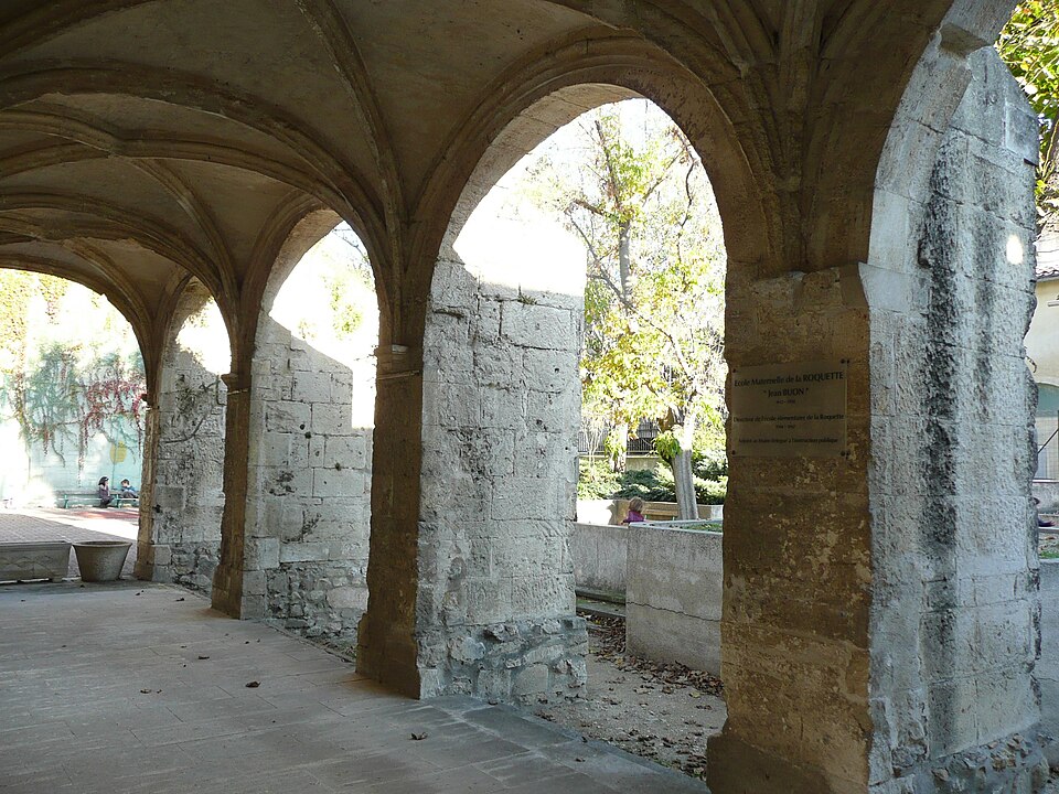 De style gothique méridional, l'édifice présente une nef de quatre travées voûtées sur croisées d'ogives, flanquée de collatéraux organisés en chapelles indépendantes ; il n'existe pas de transept véritable. Après l'arc triomphal s'ouvre un avant-chœur couvert d'une coupole octogonale sur trompes avec lanternon, vestige de la campagne de reconstruction de 1627, où se situe le maître-autel ; derrière, le chœur proprement dit est étroit et voûté en plein cintre, résultat de modifications du début du XIXe siècle. Sur la façade ouest subsistent des traces d'implantation des chapelles latérales disparues. Au sud de l'église perdurent la galerie occidentale et une moitié de la galerie nord du cloître, intégrées aux bâtiments de l'école maternelle Jean-Buon.