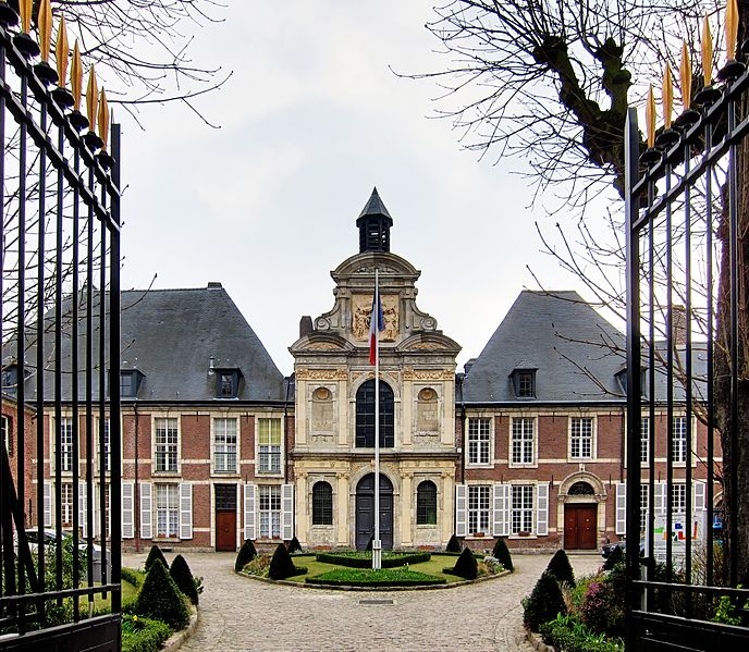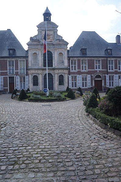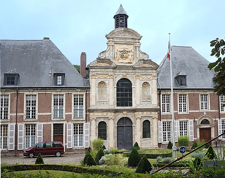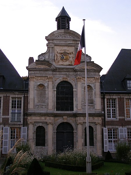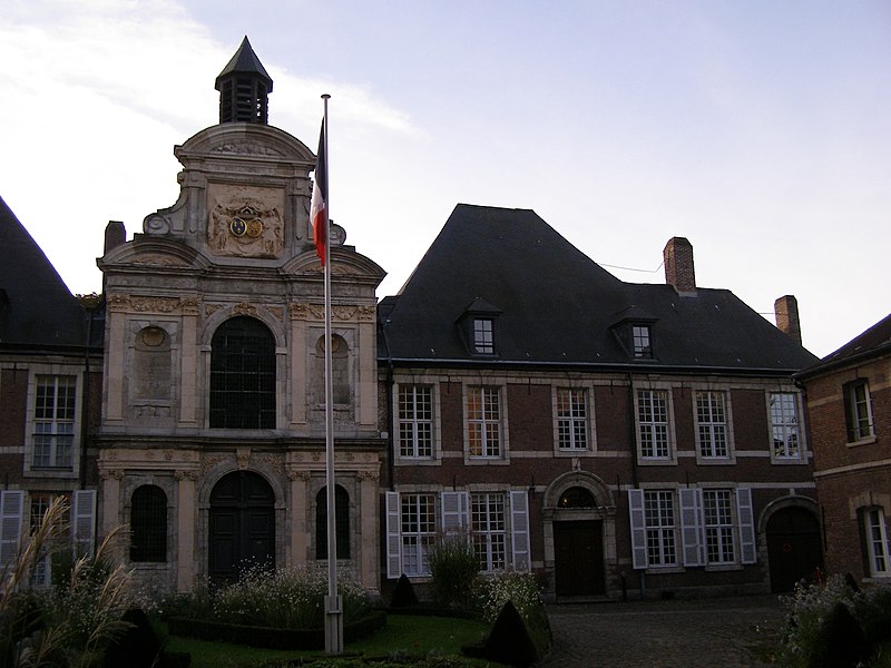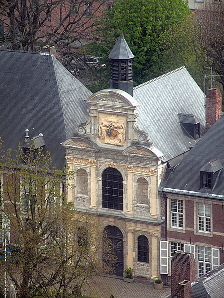 Sur une surface d’environ 8 000 m², le site conserve quatre bâtiments d’origine et une chapelle de style classique. La chapelle, construite en pierre de Lezennes entre 1674 et 1707, fut consacrée par Joseph-Clément de Bavière, archevêque de Cologne. Sa façade, organisée en trois travées et trois niveaux, présente aux deux premiers niveaux des baies en plein cintre ; au premier niveau des pilastres ioniques supportent un entablement dont la frise alterne fleurs de lys et monogrammes royaux, et le portail est surmonté d’une clé ornée d’une tête d’angelot. Le deuxième niveau affiche une baie centrale encadrée de pilastres corinthiens reliés par des chutes de feuilles et des rubans, et deux tympans courbes portent les armes royales entourées de laurier. Au troisième niveau, un bas-relief carré représente deux femmes drapées soulevant un voile pour découvrir deux écus couronnés ; l’ensemble est couronné d’un fronton courbe encadré de volutes et d’un petit clocher hexagonal en retrait.