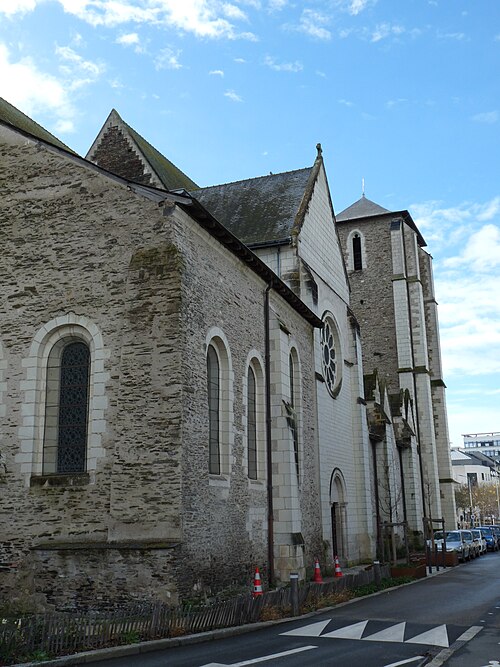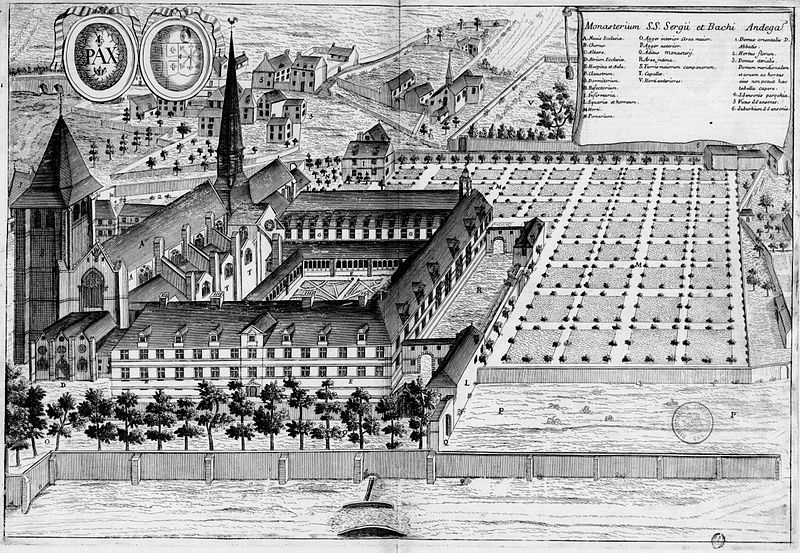 L’ensemble de l’ancienne abbaye Saint-Serge accueille le grand séminaire à partir de 1808, après que l’abbatiale soit devenue église paroissiale durant la Révolution. Le grand corps de bâtiment dit de la Philosophie, situé au nord de l’ensemble conventuel, est édifié en 1839 et une aile supplémentaire est ajoutée en 1840. Pour répondre au besoin d’un lieu de culte propre au séminaire, une chapelle est mise en œuvre par les architectes Charles Joly-Leterme et Charles Roques ; les sources indiquent sa construction entre 1864 et 1870, avec parfois la mention d’une réalisation en 1895. L’architecture de ces interventions s’inspire du gothique angevin et utilise le tuffeau, en cohérence avec l’abbatiale médiévale et les reconstructions mauristes. L’ensemble conserve des éléments anciens : l’église Saint-Serge date du XIIIe siècle, le réfectoire du XVIIe siècle et des boiseries remontent au XVIIIe siècle. Classée au titre des monuments historiques dès la liste de 1840, l’abbaye Saint-Serge voit par ailleurs l’ancien grand séminaire inscrit au titre des monuments historiques le 17 juillet 2000. Pendant la Révolution, l’abbatiale sert de dépôt d’œuvres d’art, puis de dispensaire, avant d’être affectée comme église paroissiale de 1806 à 1906. Après la séparation de l’Église et de l’État, une aile accueille la Caisse des dépôts et consignations, et pendant la Première Guerre mondiale le site devient un centre d’accueil de réfugiés, qui rassemble notamment 500 personnes à la fin de 1914 puis environ 200 deux ans plus tard ; la famille de Joseph Wresinski y a séjourné. L’enseignement féminin se développe à Angers : un cours secondaire pour jeunes filles ouvre en 1913, et en 1929 les 250 élèves du Collège de jeunes filles s’installent dans l’ancienne abbaye, restaurée et agrandie par la ville d’Angers, puis prend en 1934 le nom de Collège Joachim du Bellay. Lors de la Seconde Guerre mondiale, une grande partie des locaux est occupée par les troupes nazies jusqu’en octobre 1943 et le collège doit se replier temporairement ; entre janvier et mars 1943, des arrestations menées par la Gestapo conduisent à la déportation de la directrice Marie Talet, de quatre professeures et de l’économe vers Ravensbrück, dont certaines ne reviendront pas. Le collège et le lycée ont depuis honoré la mémoire des disparues et conservé les témoignages des survivantes, Lucienne Simier ayant, à son retour, publié un récit de ces années. Après la guerre, le Collège devient le Lycée Joachim-du-Bellay ; à la suite des réformes de la fin des années 1960, il devient mixte et accueille ses premiers garçons à partir de 1972. Aujourd’hui le lycée offre des sections binationale allemande (abibac) et européenne anglais, des options artistiques et musicales, des classes de TMD et une option théâtre active, ce qui lui vaut une réputation marquée pour son orientation artistique.