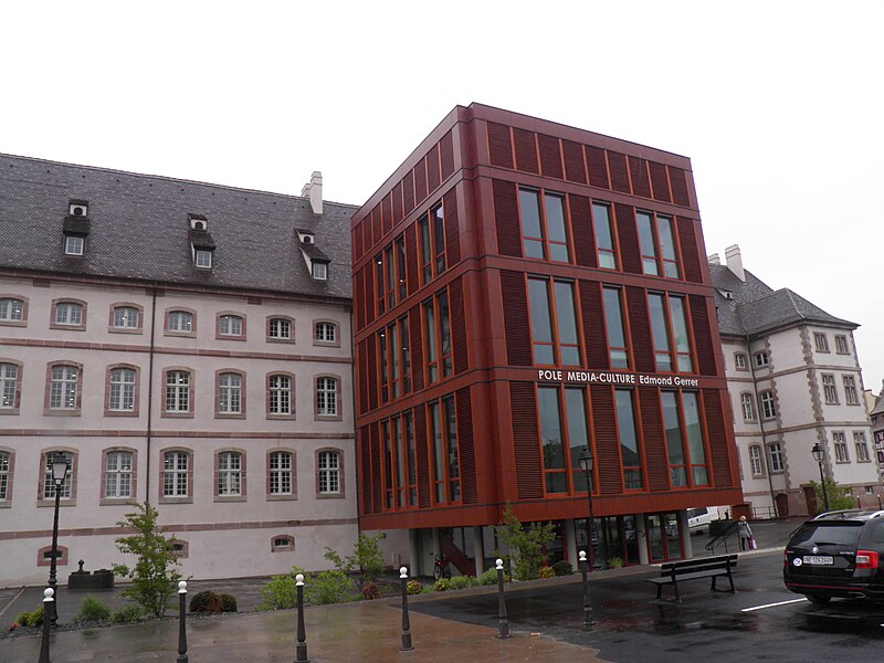 L'ancien hôpital de Colmar, situé place du 2-Février, est un monument historique du Haut-Rhin. À l'origine, le bâtiment accueillait un couvent des franciscains. Après leur départ, il fut transformé en 1543 en maladrerie, puis détruit par un incendie en 1735. La monarchie du XVIIIe siècle utilisa des pierres provenant des fortifications démantelées en 1673 pour édifier un nouvel hôpital sur ce site. Sa construction s'étendit de 1736 à 1744 et est attribuée à l'architecte lorrain Luppe Danclo. Jusqu'à la Révolution française, l'établissement avait l'obligation de mettre à disposition des bourgeois de la ville des animaux reproducteurs. L'ensemble perdit sa fonction hospitalière en 1937, lorsque l'hôpital Pasteur fut construit à l'ouest de la ville. Il accueillit ensuite une partie de l'IUT de Colmar jusqu'à la fin de l'année 2005. Entre 2009 et 2011, l'édifice a été réaménagé pour abriter la nouvelle médiathèque municipale, le Pôle Média-Culture Edmond-Gerrer. Les façades principales et latérales sont inscrites au titre des monuments historiques par l'arrêté du 18 juin 1929, modifié par l'arrêté du 4 décembre 1946. L'architecture présente vingt-cinq axes d'ouverture répartis sur un rez-de-chaussée en pierre de taille à refend, un étage-carré et un étage attique. Les façades sont de style Louis XV. Pour compléter la documentation, on peut consulter les listes et portails consacrés aux monuments de Colmar et du Haut-Rhin ainsi que les ressources disponibles sur Wikimedia Commons et les portails dédiés aux monuments historiques et à la médecine.