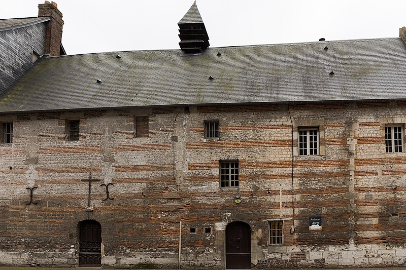 L'ancien hospice Saint-Julien, situé rue Winston Churchill à Caudebec-en-Caux (commune de Rives-en-Seine, Seine-Maritime), est inscrit au titre des monuments historiques depuis le 16 juillet 1996. Fondé au début du XIIIe siècle, l'hospice a été installé aux alentours de 1684-1685 dans un bâtiment du XVIIe siècle appelé Maison Bucaille, puis désigné plus tard sous le nom de bâtiment Henri IV. Un second bâtiment a prolongé l'ensemble vers l'est en 1725. Une chapelle lui est accolée : certaines sources la datent de 1780 et la situent dans la moitié est du bâtiment du XVIIe siècle, avec deux travées ouest adossées au bâtiment de 1725, tandis que d'autres la décrivent comme dédiée à saint Léonard. L'ensemble a été remanié au XIXe siècle. Les constructions sont en brique et pierre, couvertes d'ardoise. La protection au titre des monuments historiques concerne les façades et les toitures du bâtiment dit Henri IV et du bâtiment de 1725, l'escalier et une pièce lambrissée à l'étage du bâtiment Henri IV, ainsi que la chapelle. L'édifice est aujourd'hui utilisé comme maison de retraite. Les principales sources sont Le Patrimoine des Communes de la Seine-Maritime et l'ouvrage de Jacqueline et Maurice Dragon, Histoire d'un hôpital rural Caudebec-en-Caux.