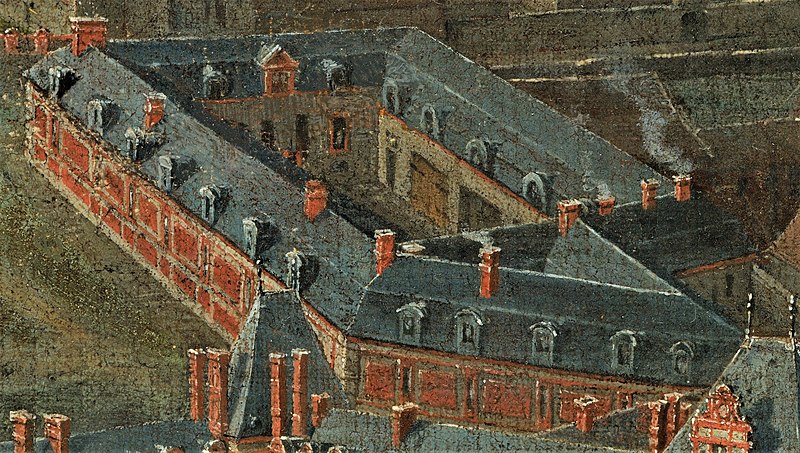 Les bâtiments du quartier Boufflers, du côté de la rue Saint-Honoré, comprennent un corps principal sur quatre niveaux organisé autour d'une cour rectangulaire, ainsi que deux bâtiments plus petits de deux niveaux vers le nord-est. Trois protections au titre des monuments historiques concernent différentes parties de l'ensemble : la façade sur la place du Général-de-Gaulle et le bâtiment en rez-de-chaussée à gauche de la caserne Boufflers ont été inscrits par arrêté du 14 décembre 1928, le pavillon et sa porte sur la rue Saint-Honoré ont été inscrits par arrêté du 2 août 1929, et la porte et le sol de l'ancien hôtel de Ferrare ainsi que le mur de clôture sur la rue de Ferrare ont été classés par arrêté du 22 septembre 1987. Les vestiges de l'hôtel de Ferrare appartiennent à la commune, tandis que la caserne Boufflers est propriété de l'État.