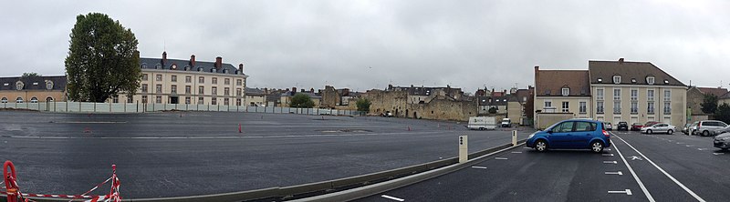 À la fin des années 1990, la municipalité envisagea un projet d'aménagement comprenant un centre commercial, une salle polyvalente et des logements, ce qui suscita de vives polémiques au regard du caractère commercial du projet au détriment d'un souci architectural et culturel. Les opposants demandèrent la révision du projet et la protection totale du mur de Ferrare ; le ministère de la Culture confirma ce souhait le 28 septembre 2000 et le directeur national du patrimoine déclara que « le mur sera intégralement conservé, sur 18,60 mètres ». Le 4 janvier 2001, une partie du mur de l'enceinte du parc de stationnement fut rasée avec l'autorisation du ministère, puis une fausse manœuvre détruisit accidentellement une grande partie du mur classé, provoquant l'indignation des habitants. La mairie mit la responsabilité sur l'entreprise chargée des démolitions et sollicita l'architecte en chef des monuments historiques, Jacques Moulin, qui proposa d'envisager un projet plus abouti incluant l'aménagement d'un jardin à l'emplacement de l'ancien hôtel de Ferrare et une intervention sur la place du Général-de-Gaulle, ce qui entraîna l'étude d'un projet d'ensemble dès février.