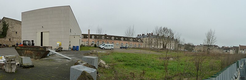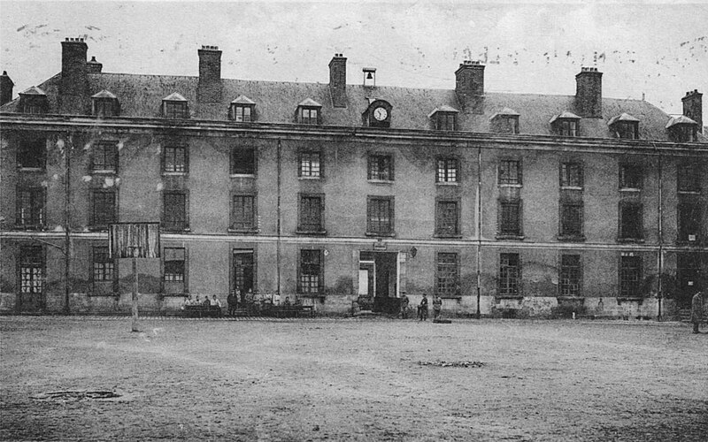 Le terrain se situe entre la rue de Ferrare et la rue Saint-Honoré, le portail ouvrant sur la place du Général-de-Gaulle, dans le département de Seine-et-Marne en Île-de-France. L'hôtel de Ferrare a été fondé au XVIe siècle et son portail est attribué à Sébastien Serlio. Le quartier militaire et son pavillon datent du XVIIIe siècle. Le portail a ensuite été enclavé dans le mur du quartier de cavalerie, lequel s'est étendu en intégrant les écuries de Madame la Dauphine sur la rue de Ferrare. En 1887, le quartier Saint-Honoré prit le nom de quartier Boufflers en référence à Louis-François de Boufflers, mort à Fontainebleau ; ce nom est resté en usage. Des vues aériennes et des photographies prises en avril 1935 montrent les bâtiments depuis plusieurs points de vue.